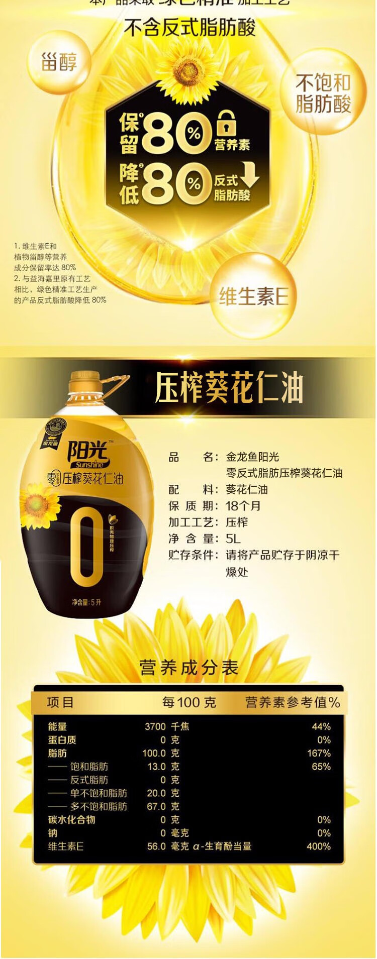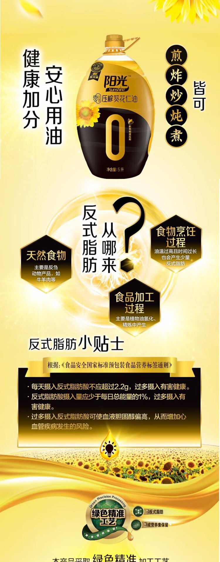 金龙鱼阳光零反式脂肪压榨葵花仁油5Lx1桶