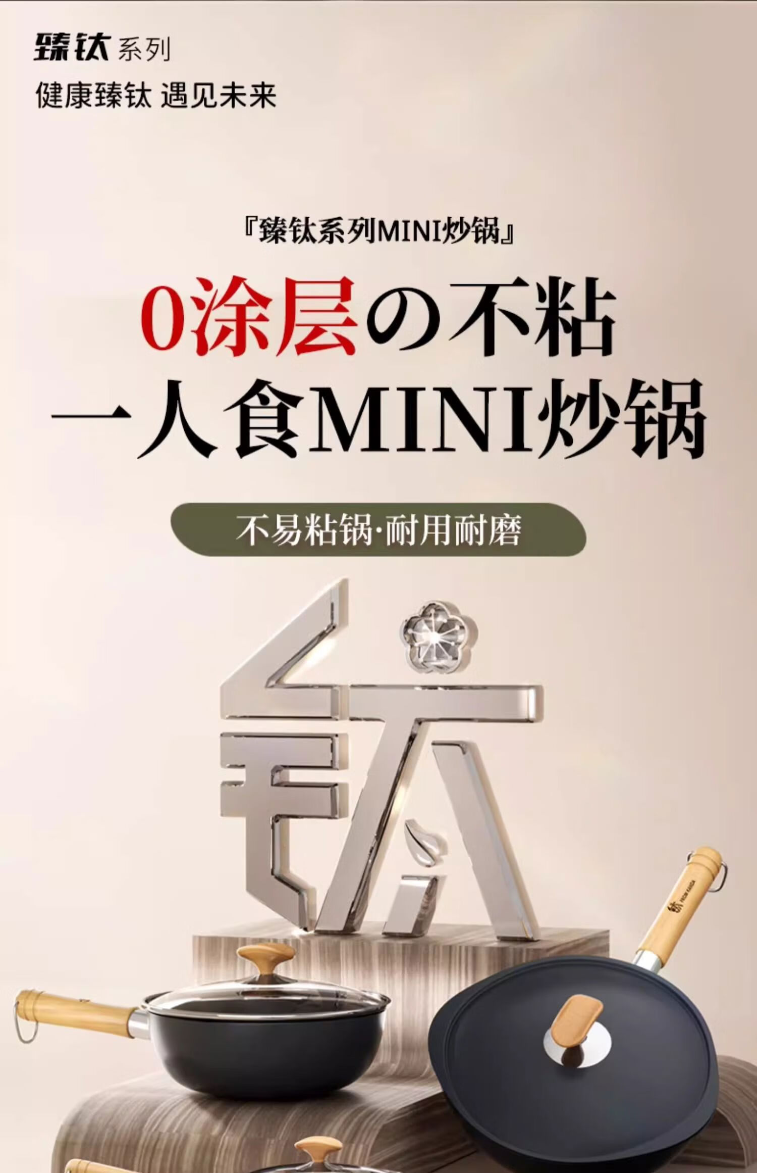 神田(KANDA)臻钛系列0涂层钛合金mini炒锅26cm