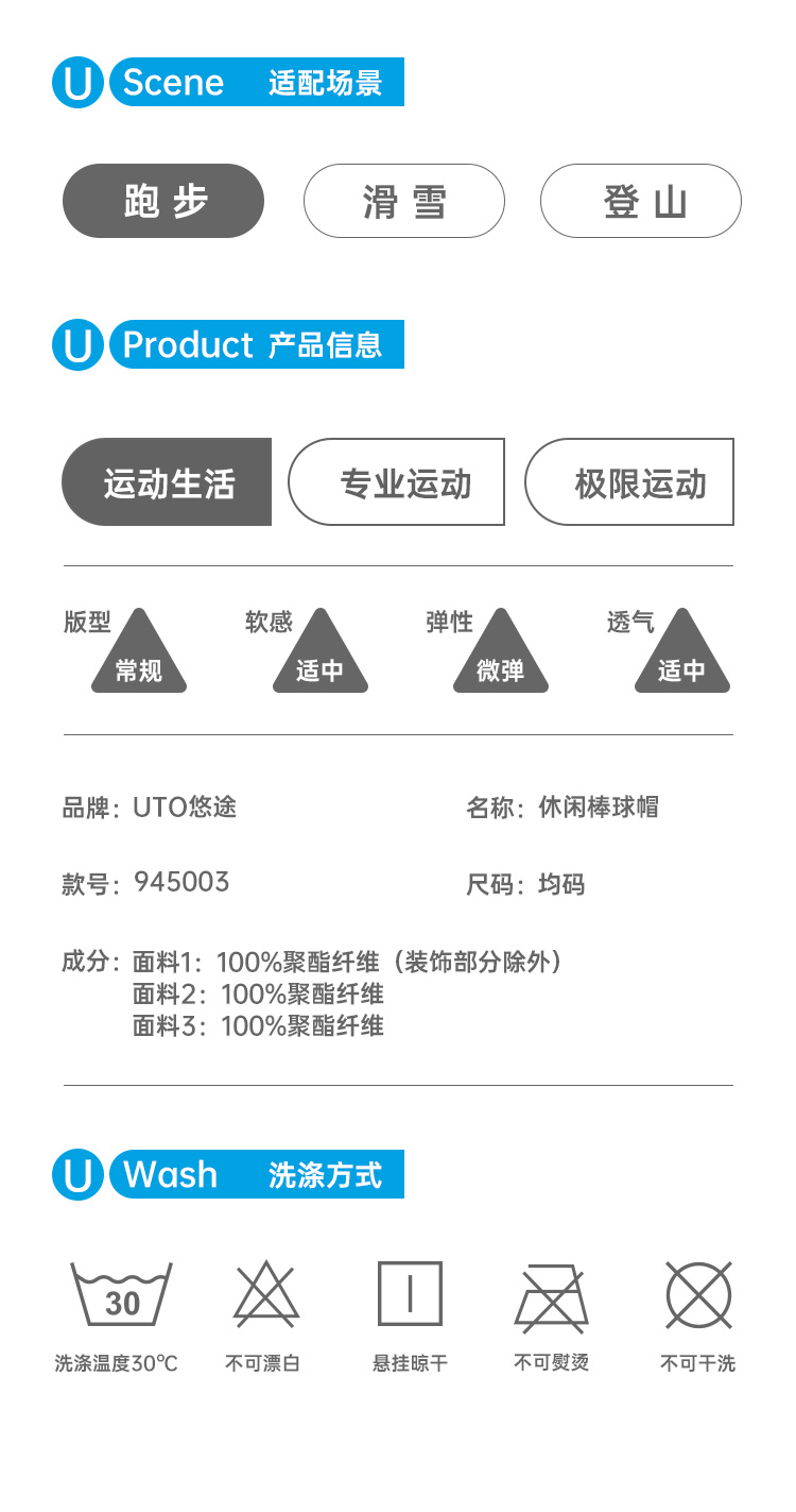 UTO/悠途户外休闲棒球帽夏季男款跑步遮阳男帽马拉松中性休闲帽