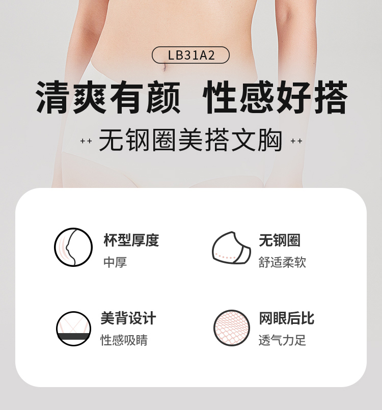 都市丽人少女三步优选BC杯调整型文胸锁边BC:薄3/4杯少女文胸四排扣无钢圈LJ22B5