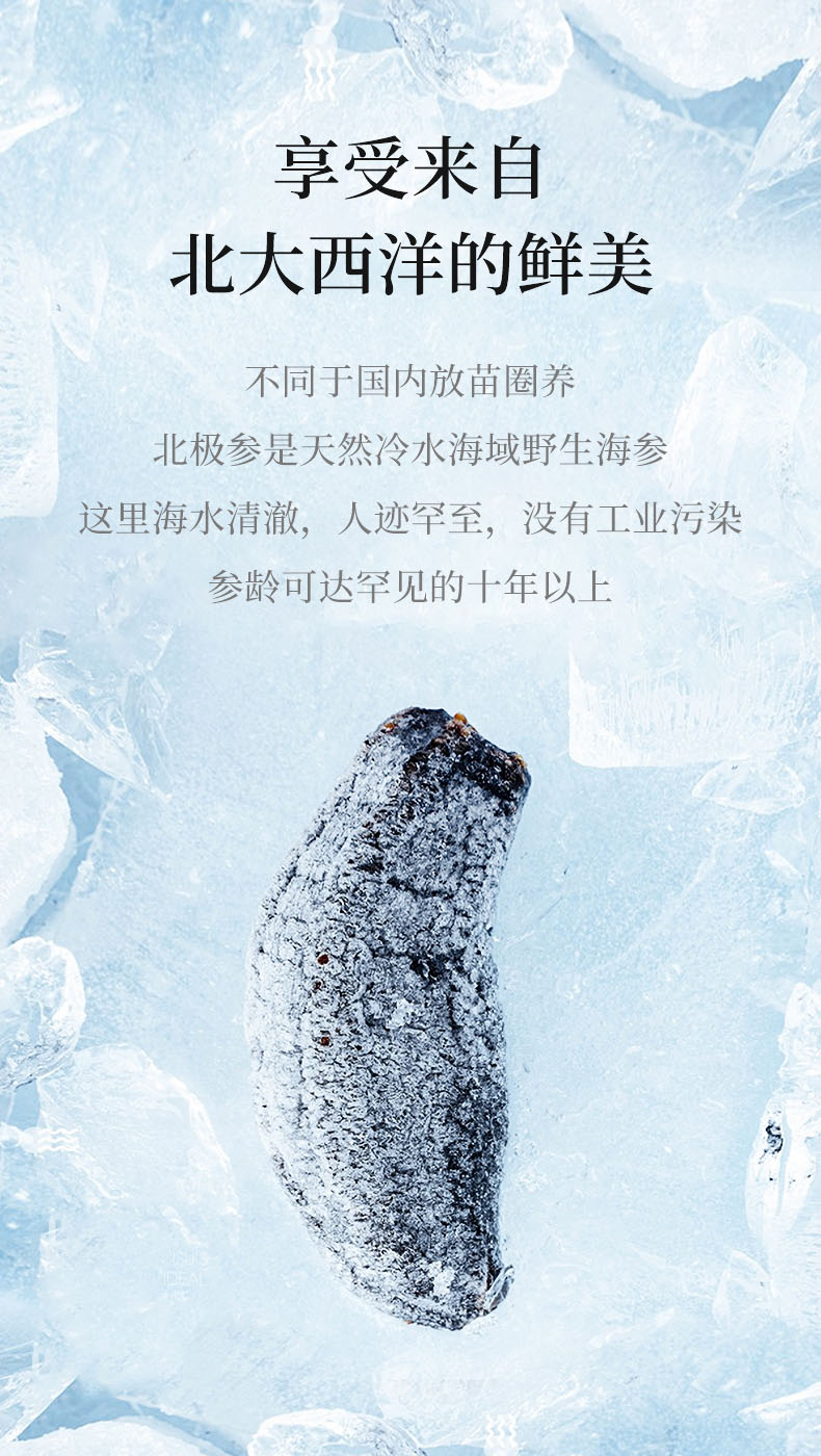 【加拿大野生北极参】进口高性价,蛋白质高达71.5%纯野生!鲜味足,口感劲道,肉质紧实细腻!淡干加工,不添加盐、糖等物质!滋补养生,营养价值高!【OJ-J】