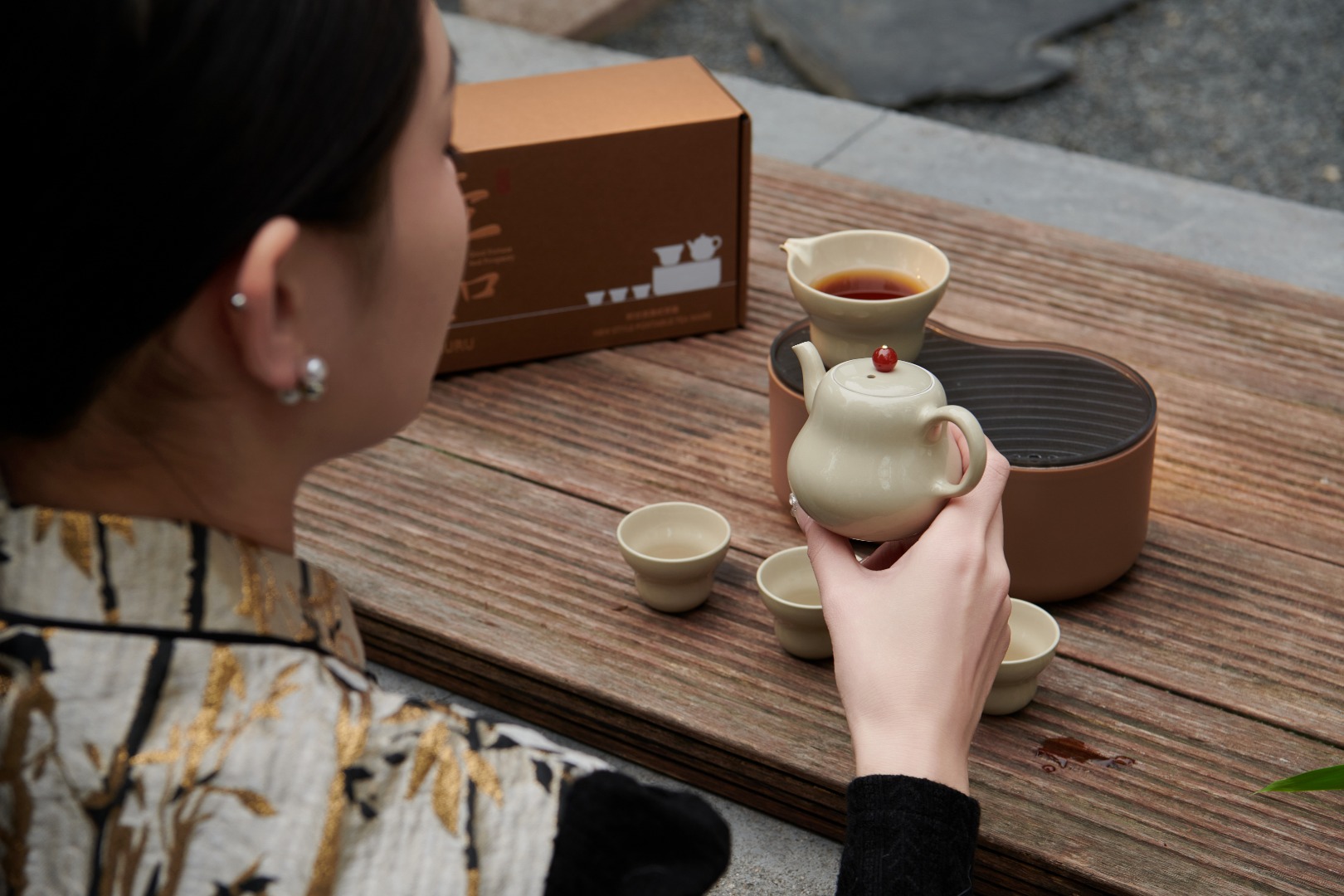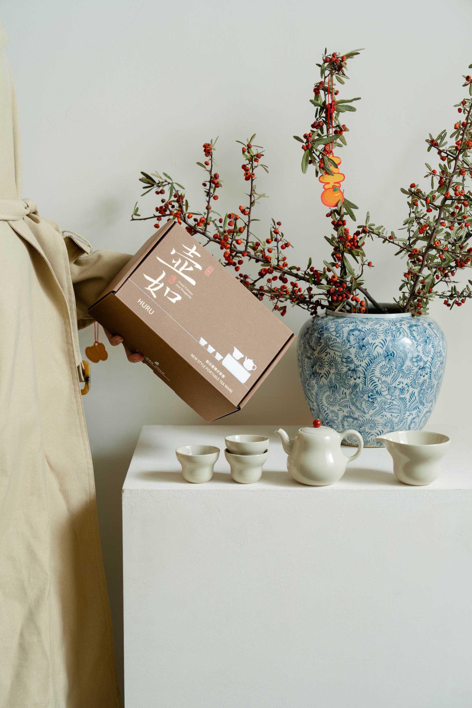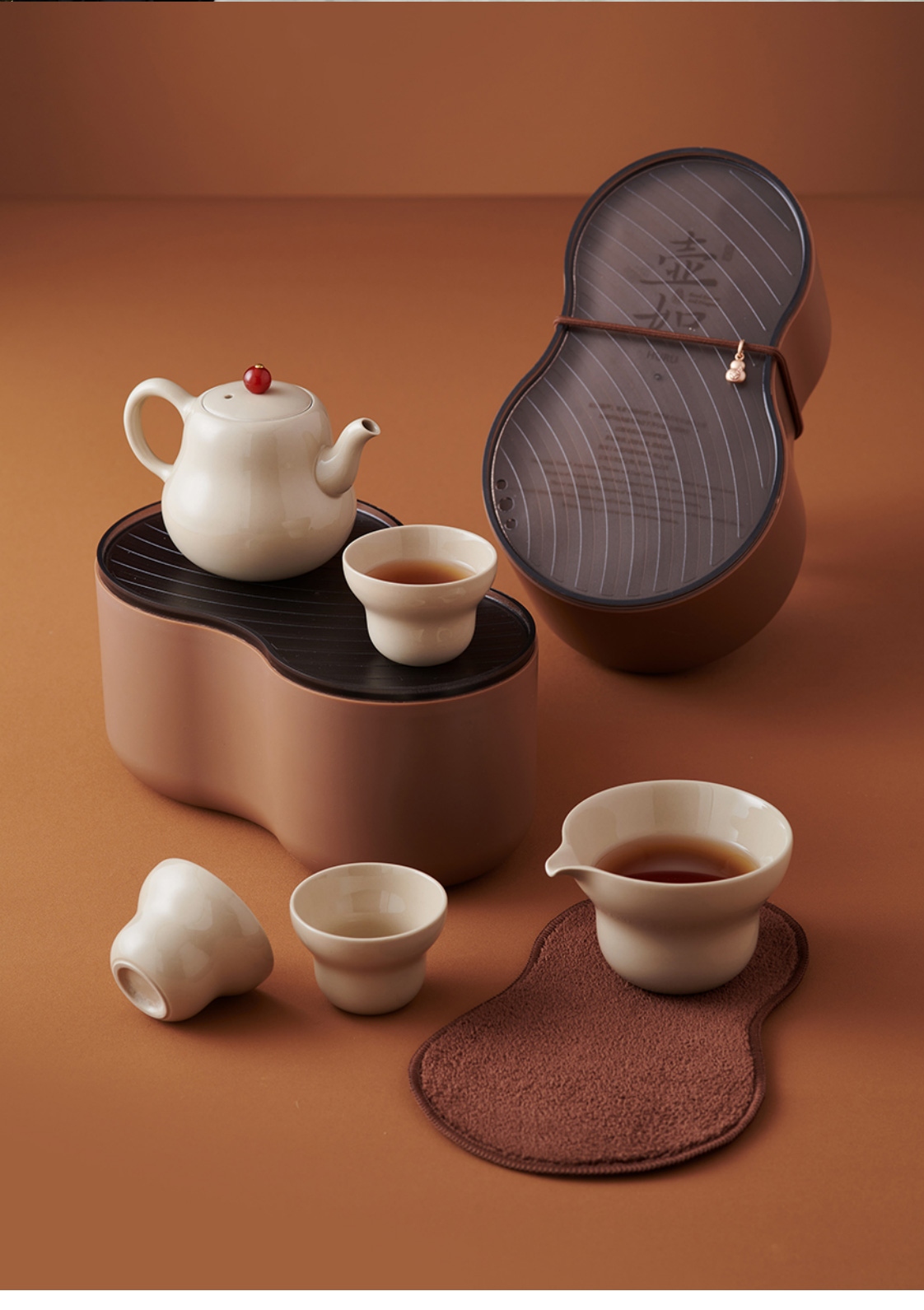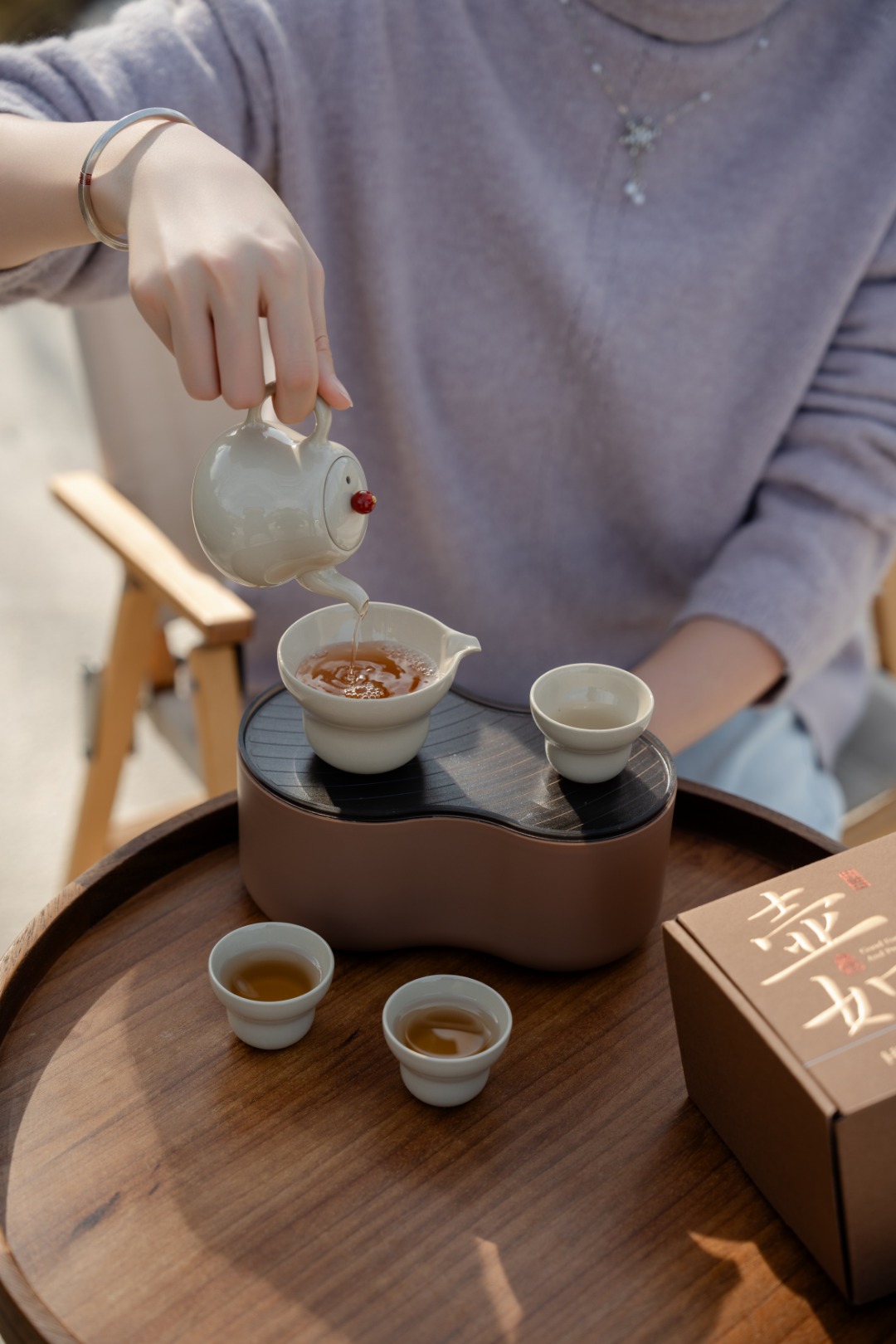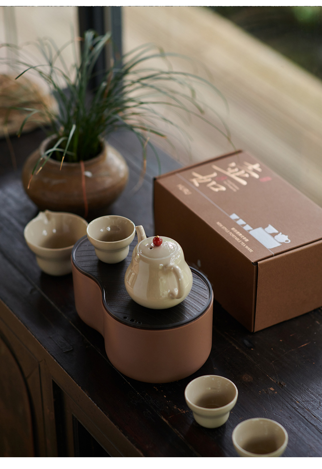 盒气有礼福如便携茶具套组一壶三杯旅行茶具中式国风陶瓷茶器