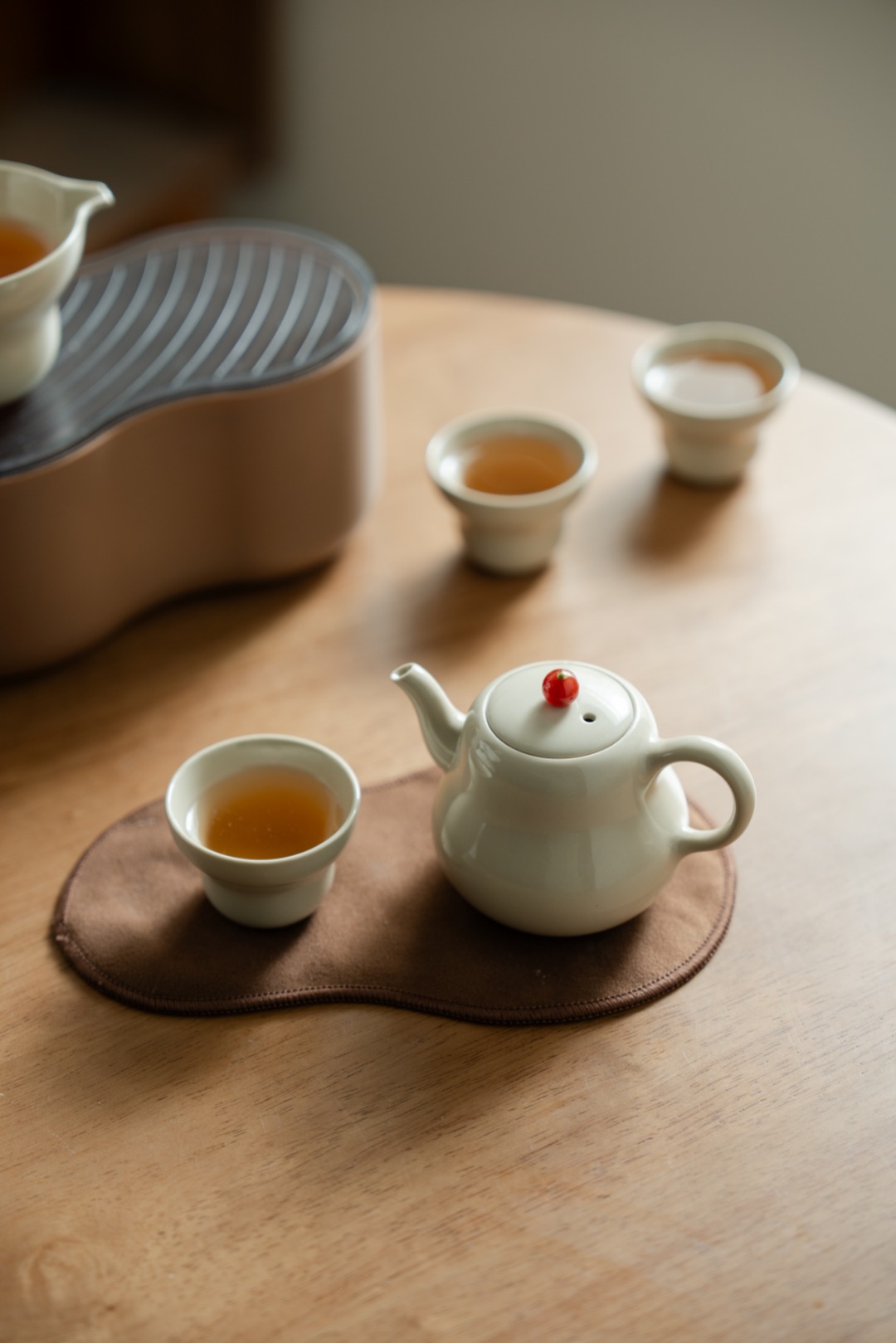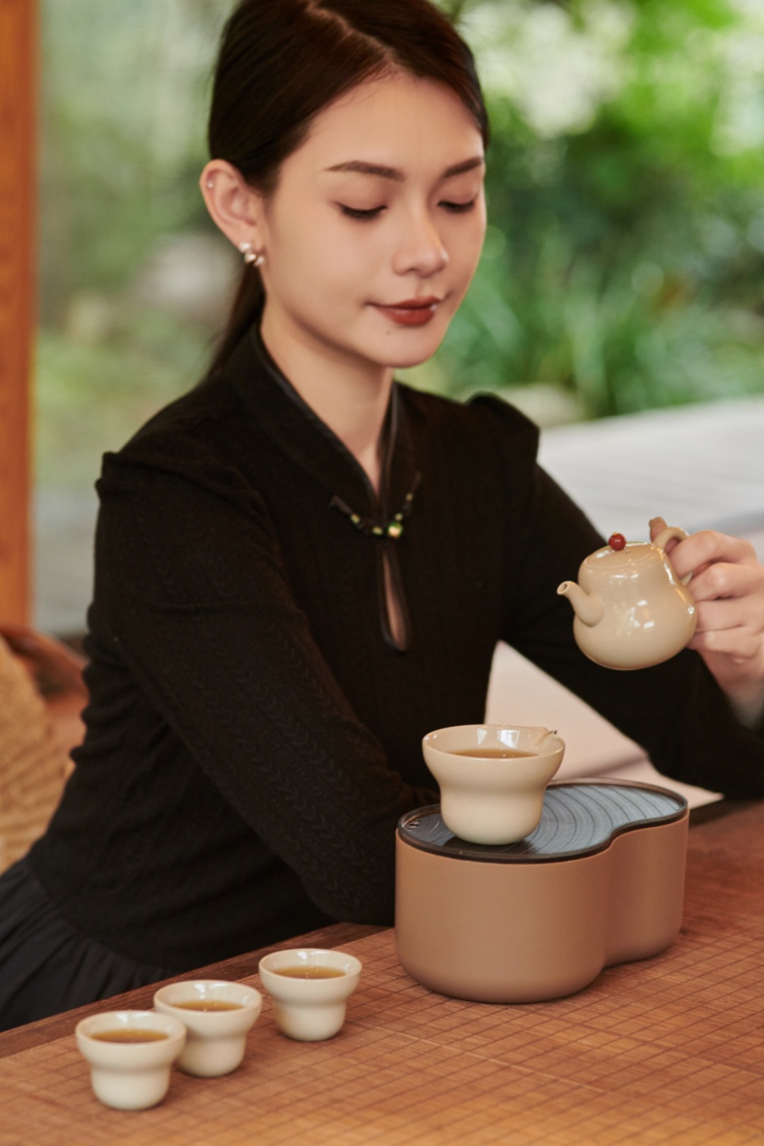 【旅行茶具】吉橙陶瓷旅行茶具便携包户外车载茶壶杯快客杯一壶四杯茶海套装