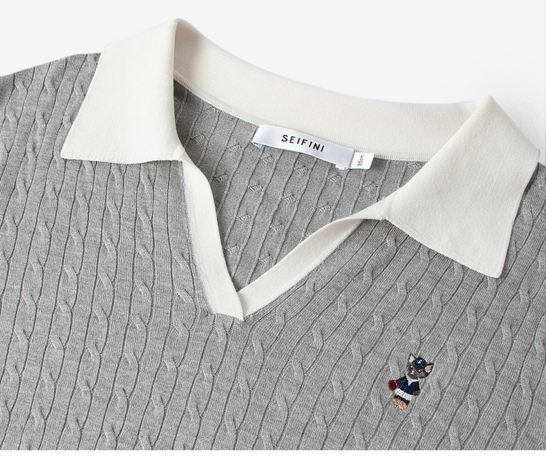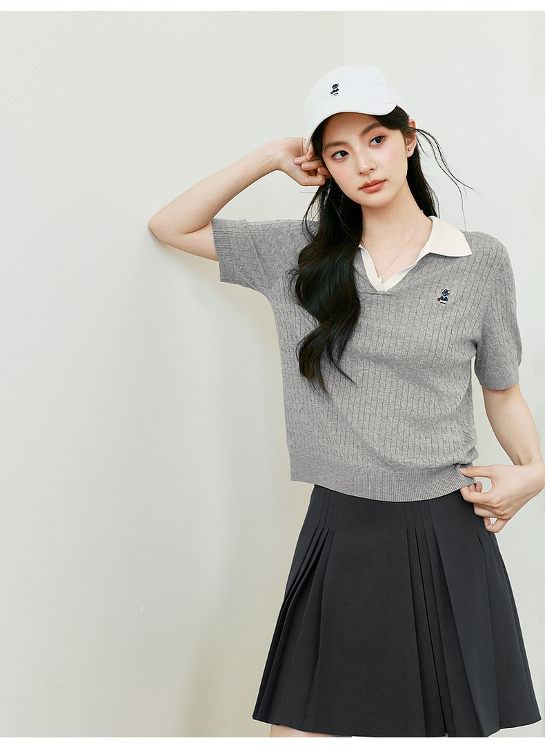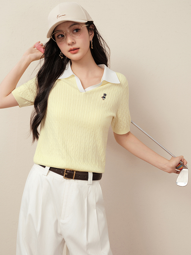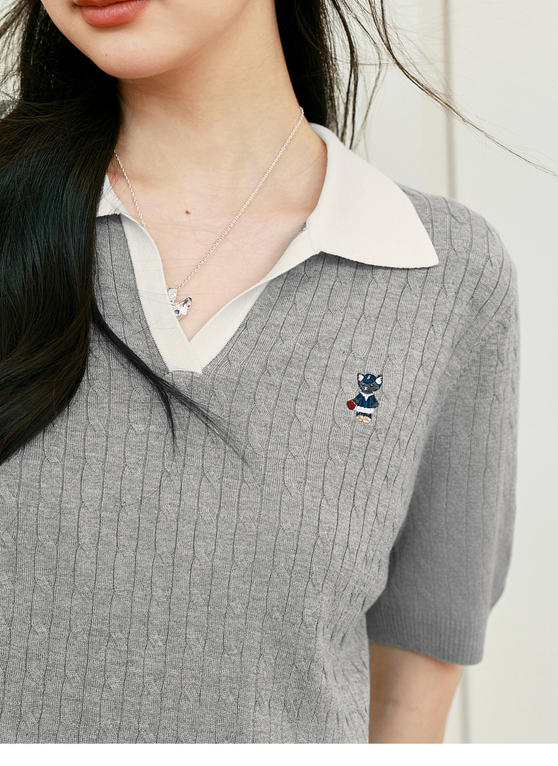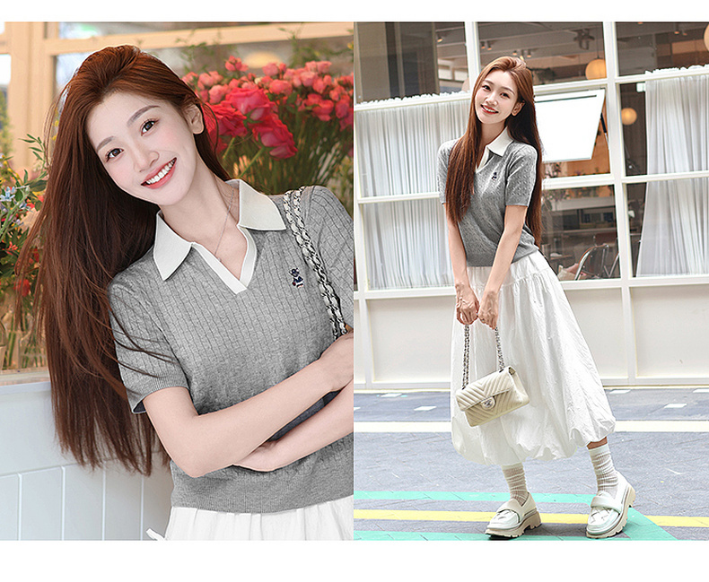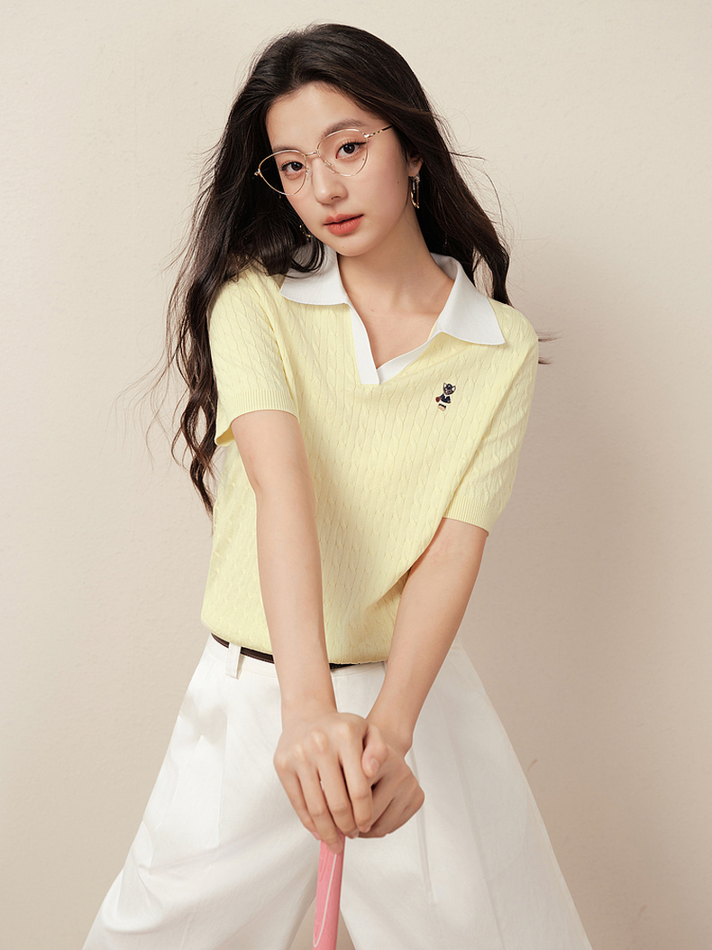 【萌宠系列】诗凡黎撞色POLO领针织衫25夏新款短袖上衣3G4630911