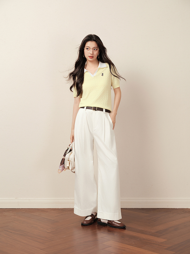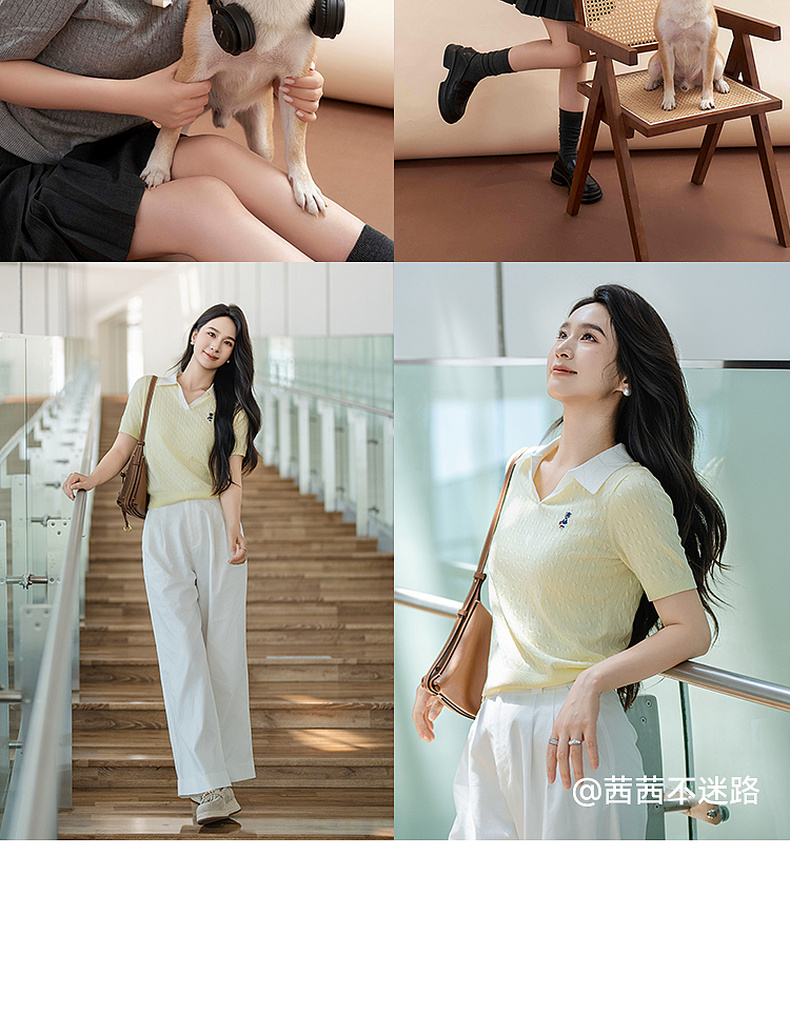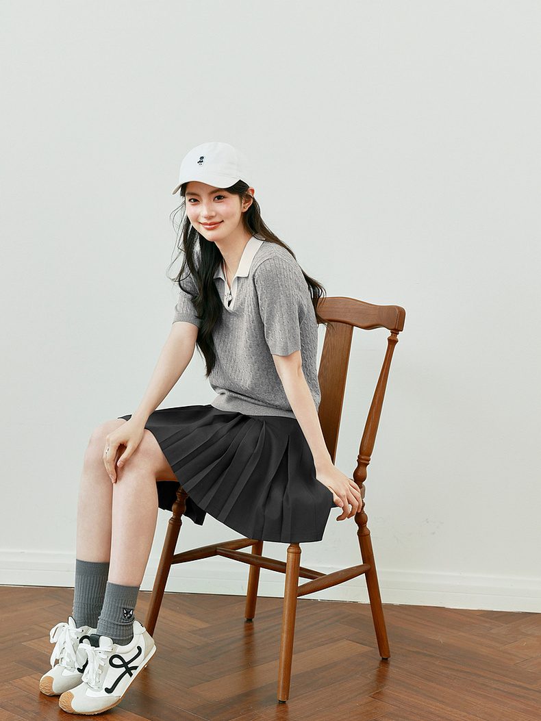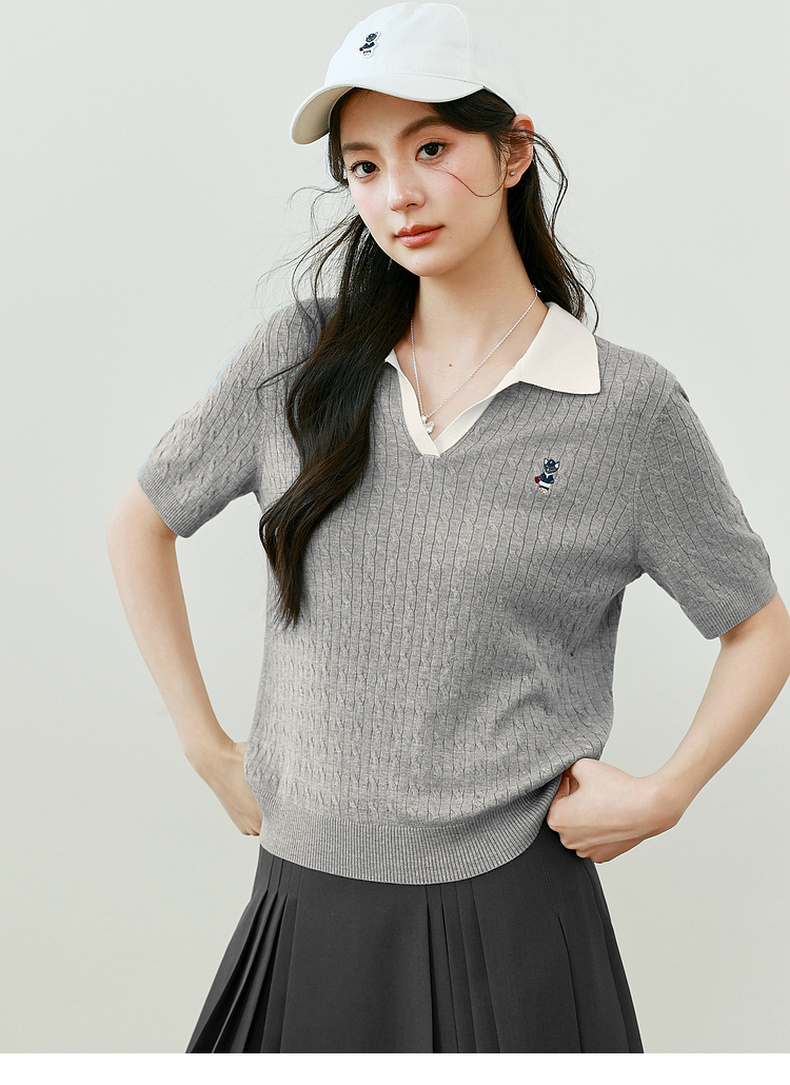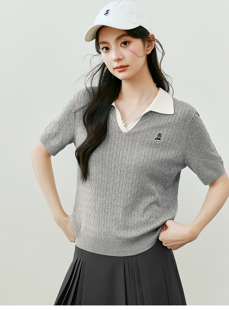 【萌宠系列】诗凡黎撞色POLO领针织衫25夏新款短袖上衣3G4630911