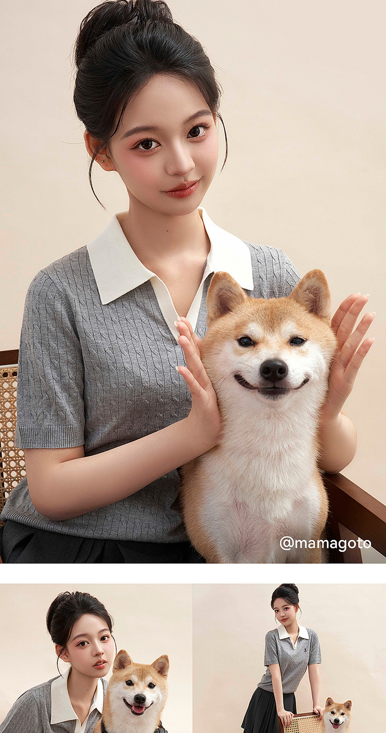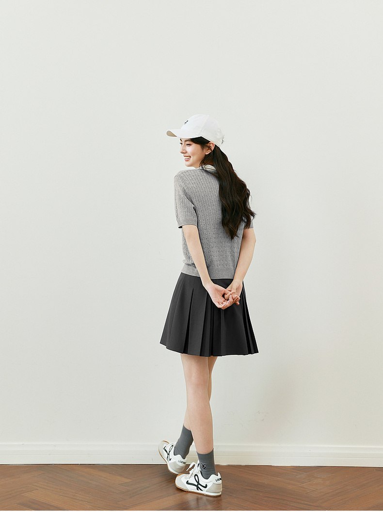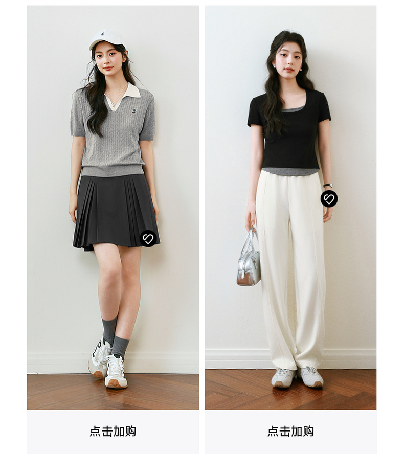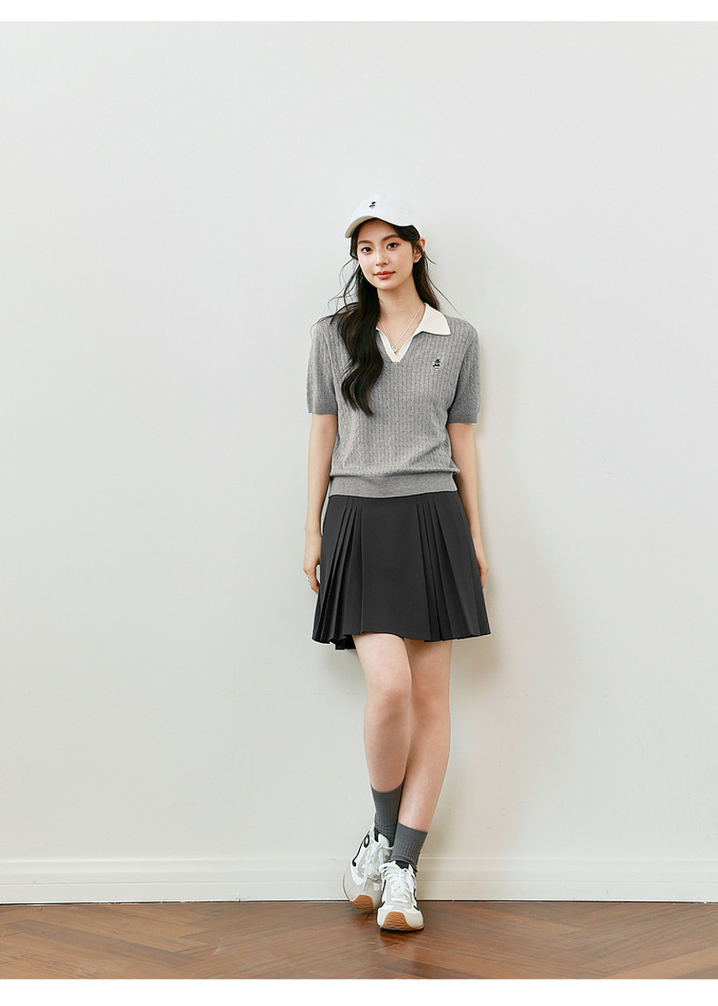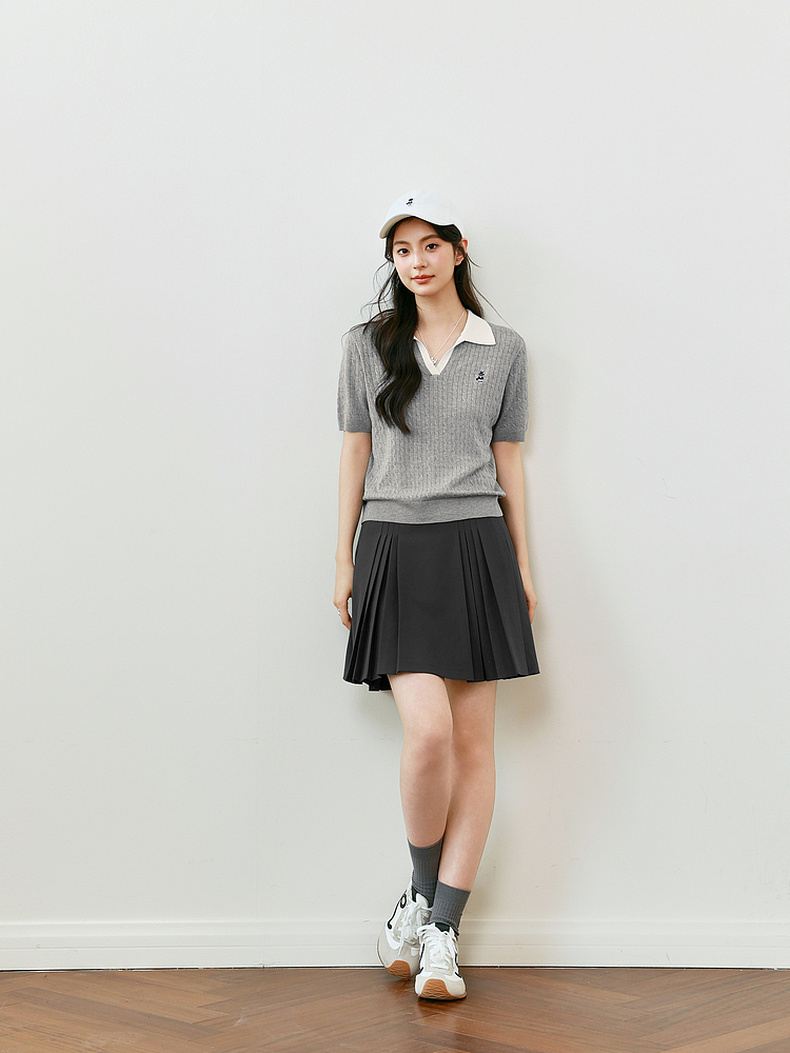 【萌宠系列】诗凡黎撞色POLO领针织衫25夏新款短袖上衣3G4630911
