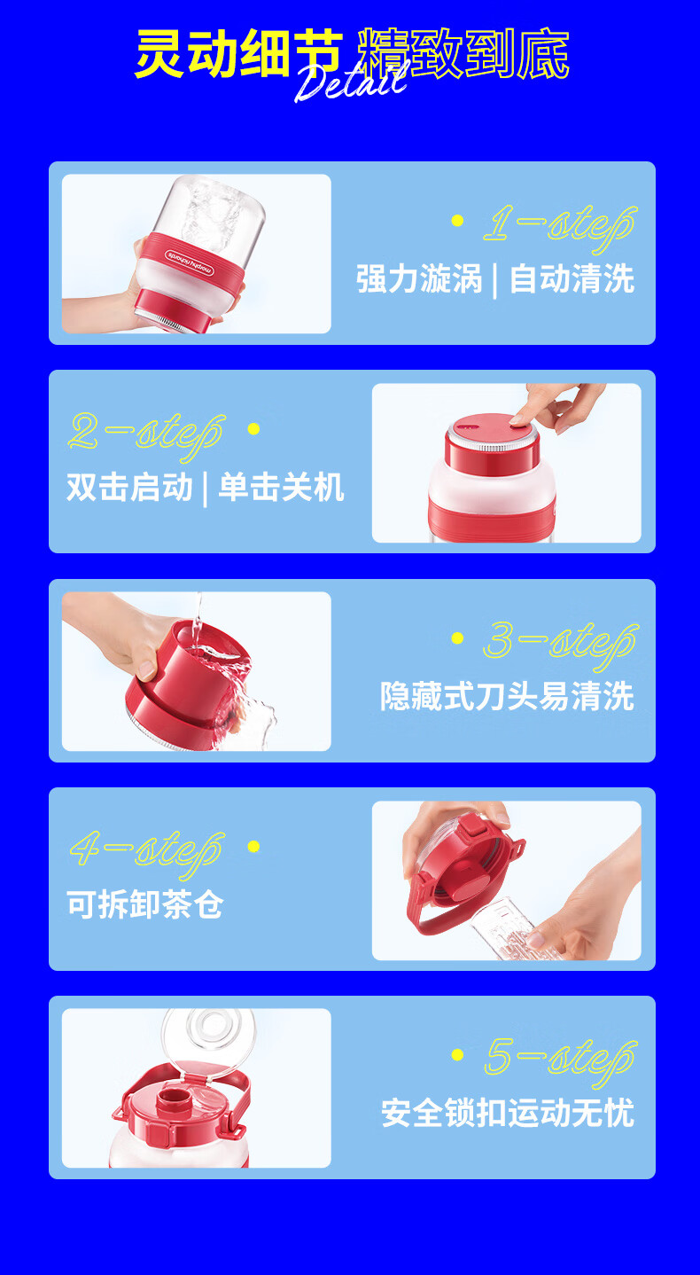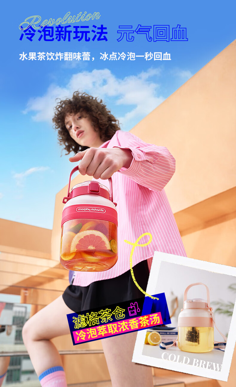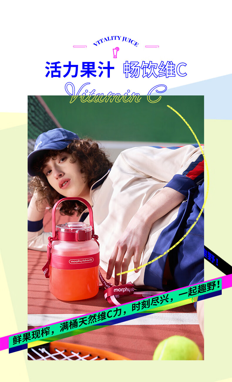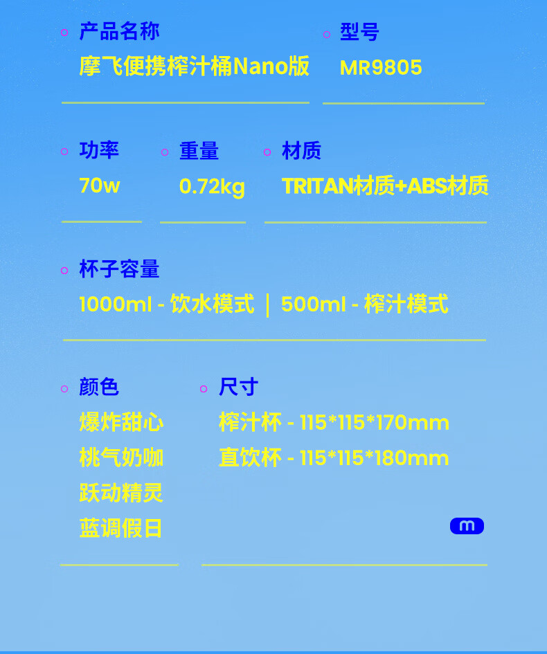 摩飞电器(Morphyrichards)榨汁机 榨汁桶便携榨汁杯无线充电果汁杯随行杯1升容量户外果茶冷泡桶迷你小胖吨MR9805 Nano版
