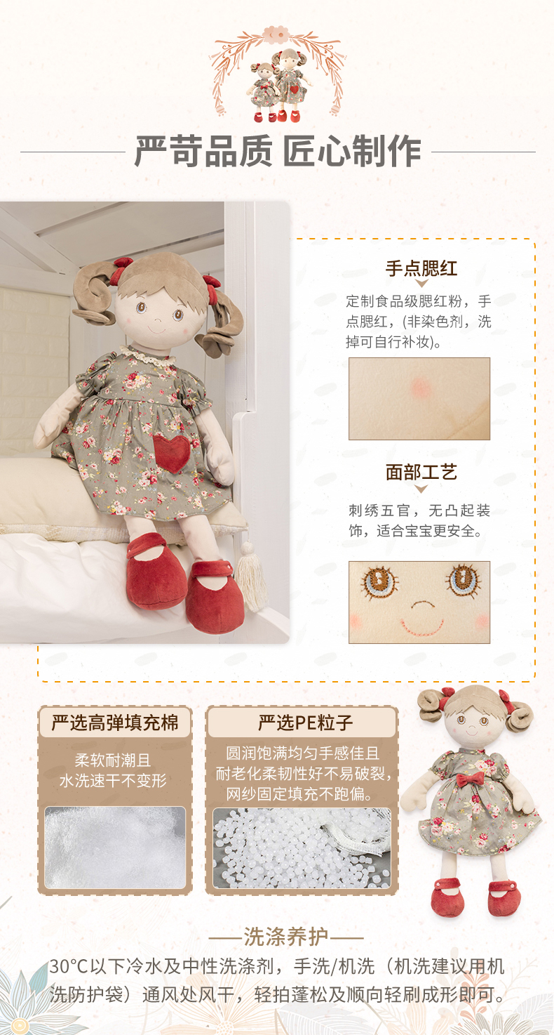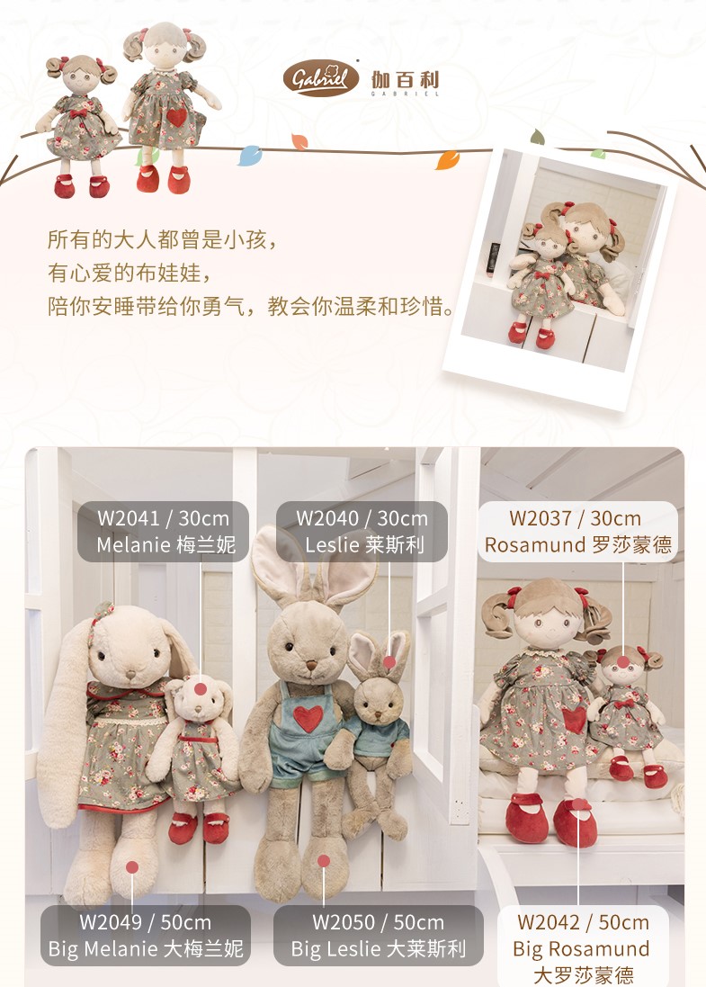伽百利毛绒穿裙娃娃/罗莎蒙德W2037毛绒玩具公仔睡觉抱枕安抚陪伴玩偶男孩女孩礼物