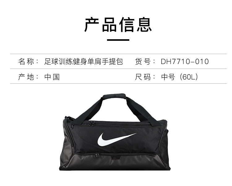 小李子NIKE耐克足球单肩包运动训练手提斜跨包中号60L大容量健身装备包