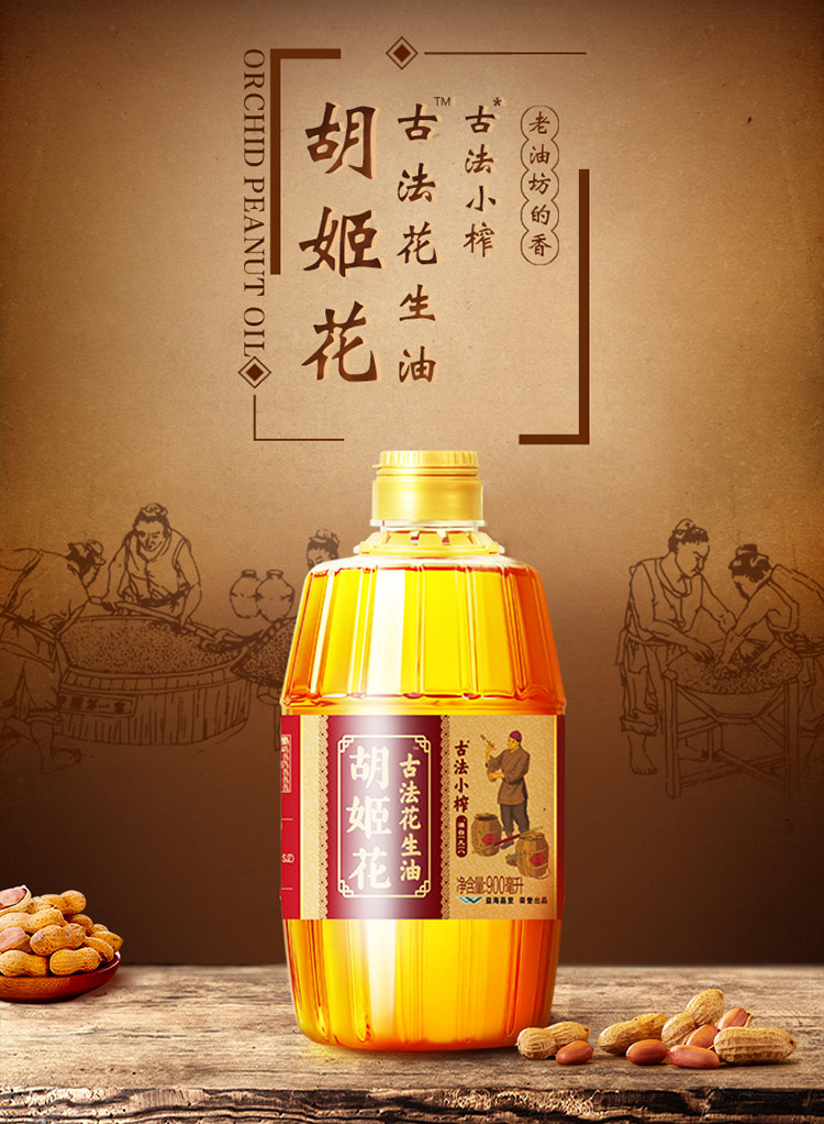 胡姬花 古法小榨一级花生油 900ml