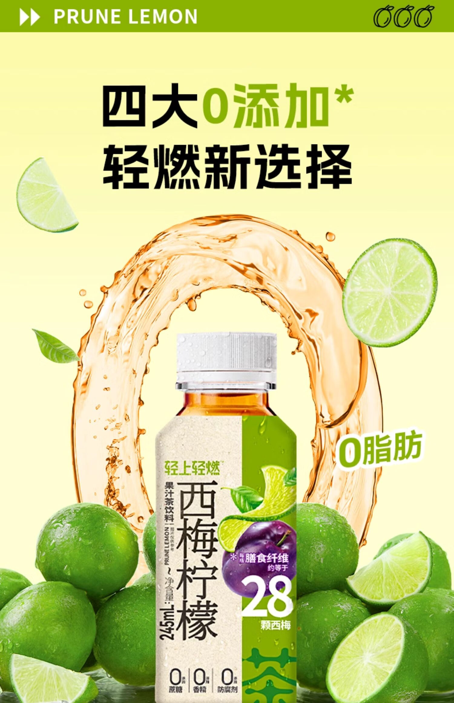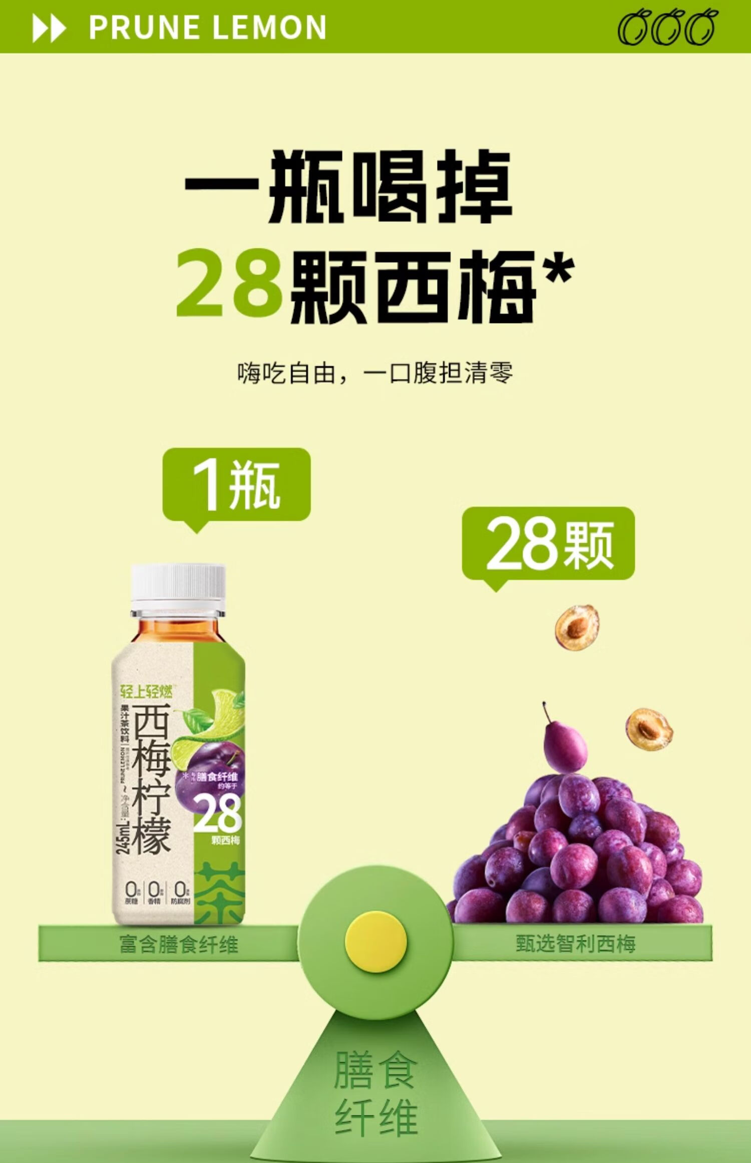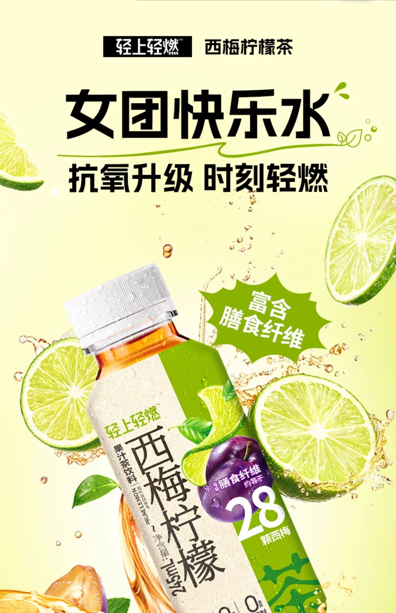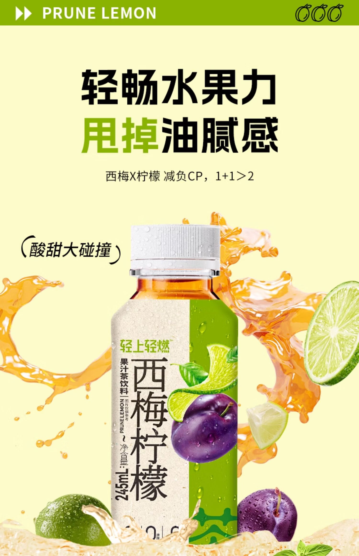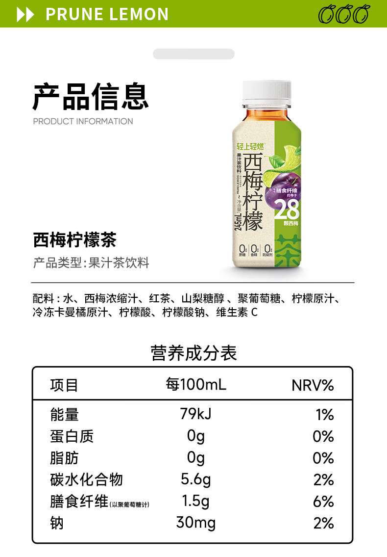 轻上 西梅柠檬果汁茶饮料 245ml/瓶