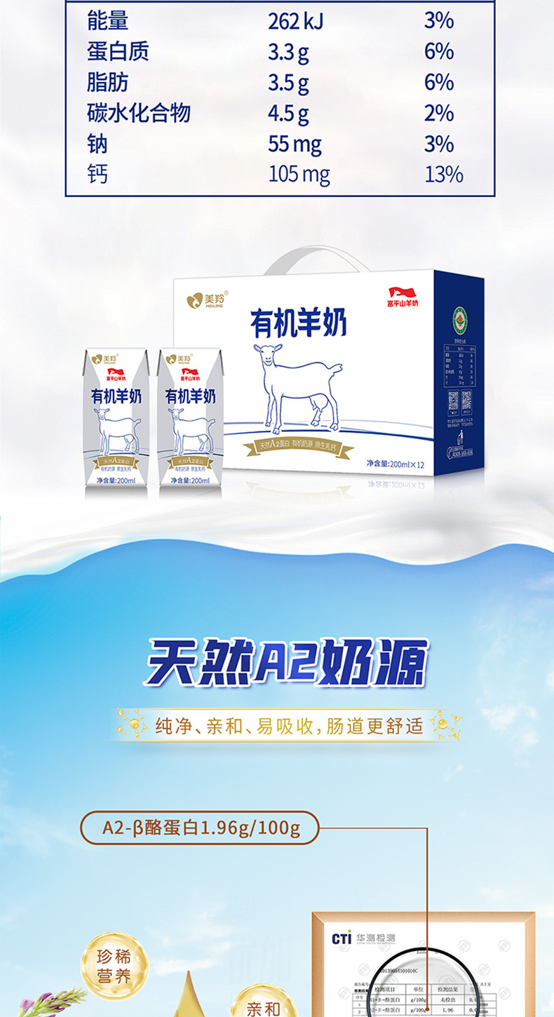 【新品上市】美羚有机羊奶纯羊奶 液态奶200ml*12盒整箱