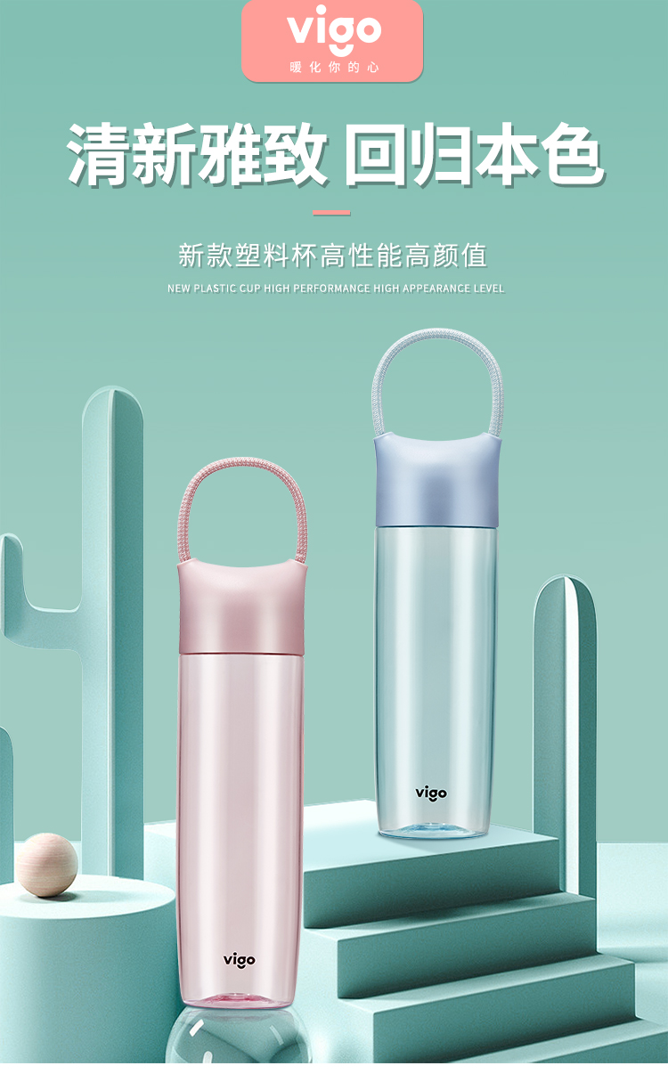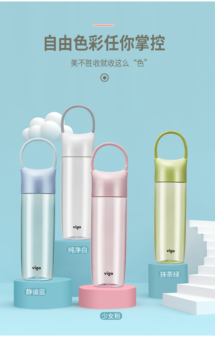 魅果淑雅550ml Tritan塑料杯VIG10455少女可爱学生儿童超萌便携