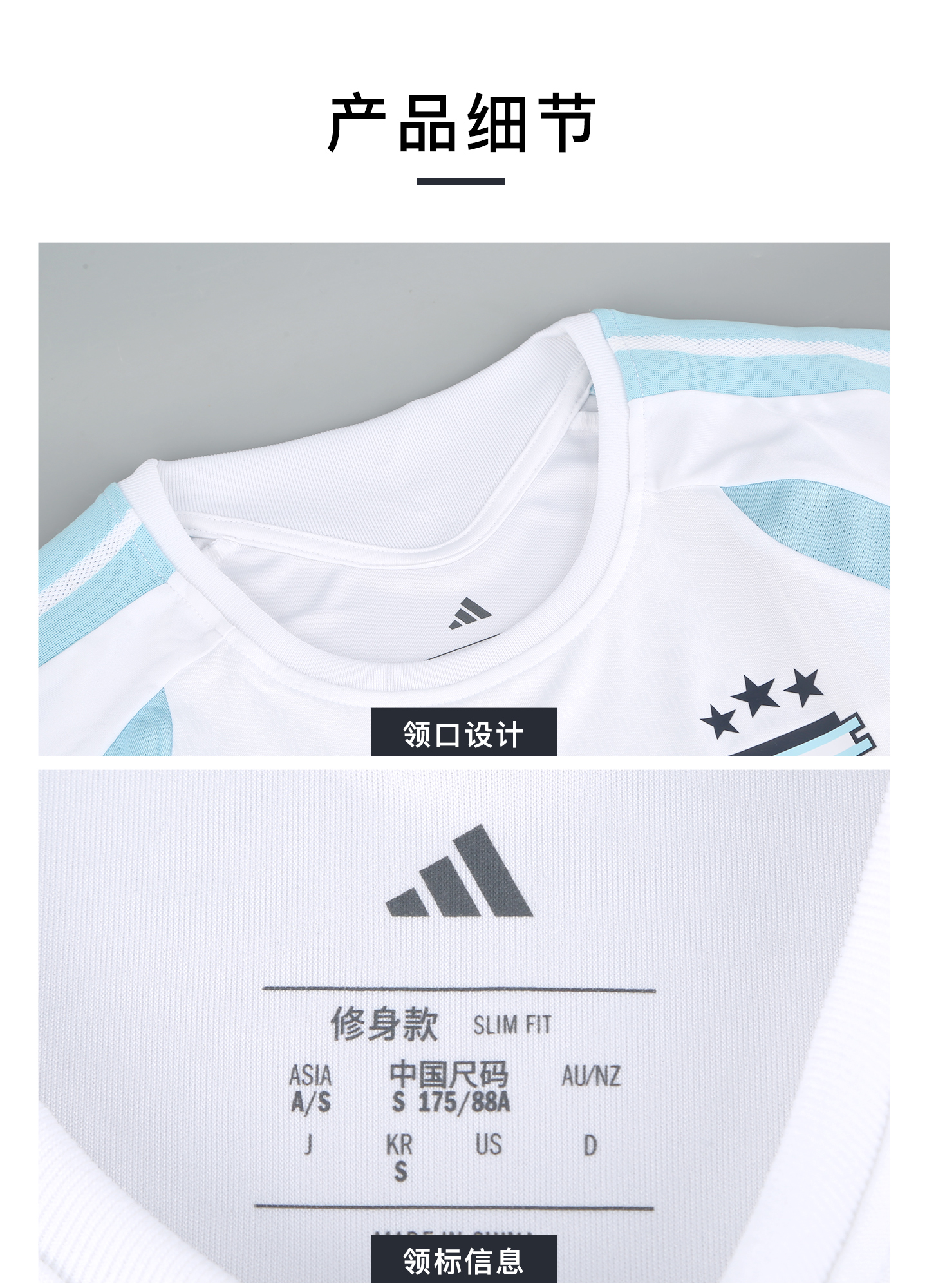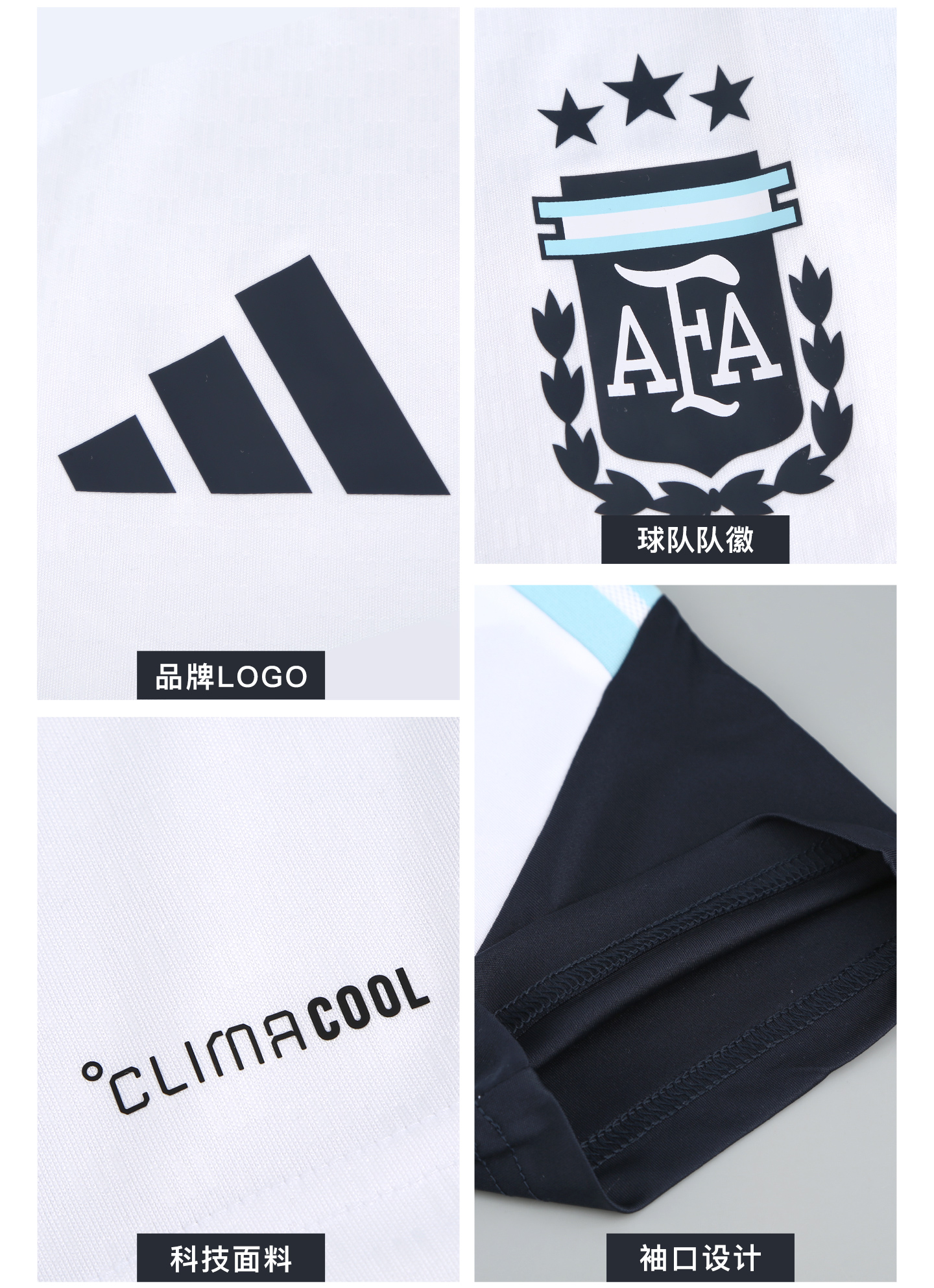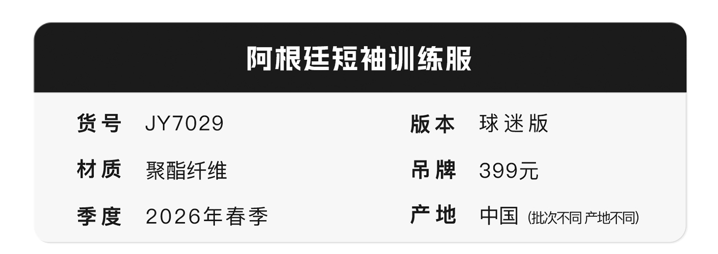 小李子ADIDAS阿迪达斯阿根廷球迷版运动短袖训练服成人男JY7029