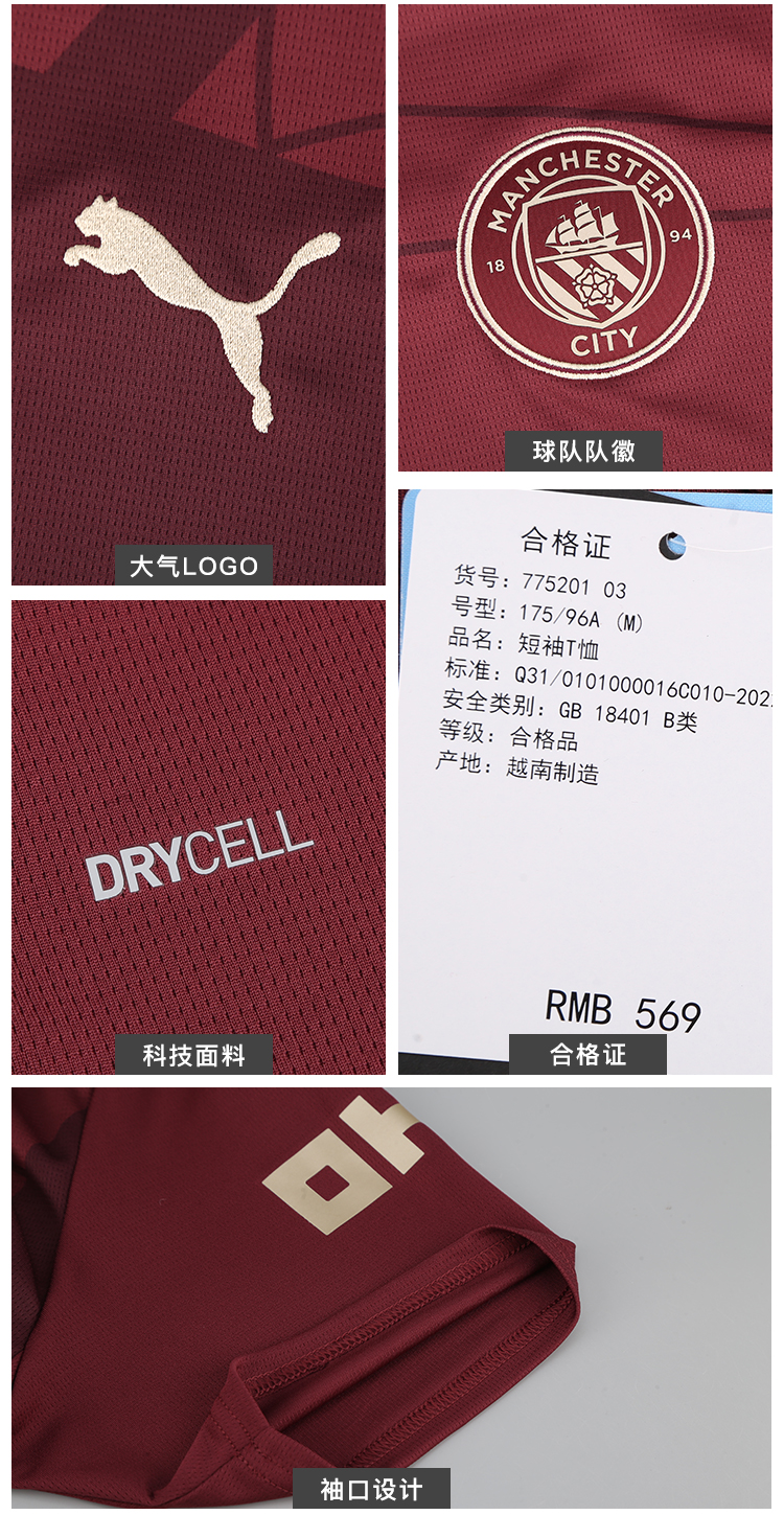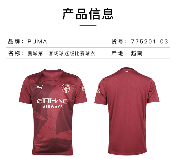 小李子PUMA彪马24/25赛季曼城第二客场球迷版球衣短袖成人男775201 03