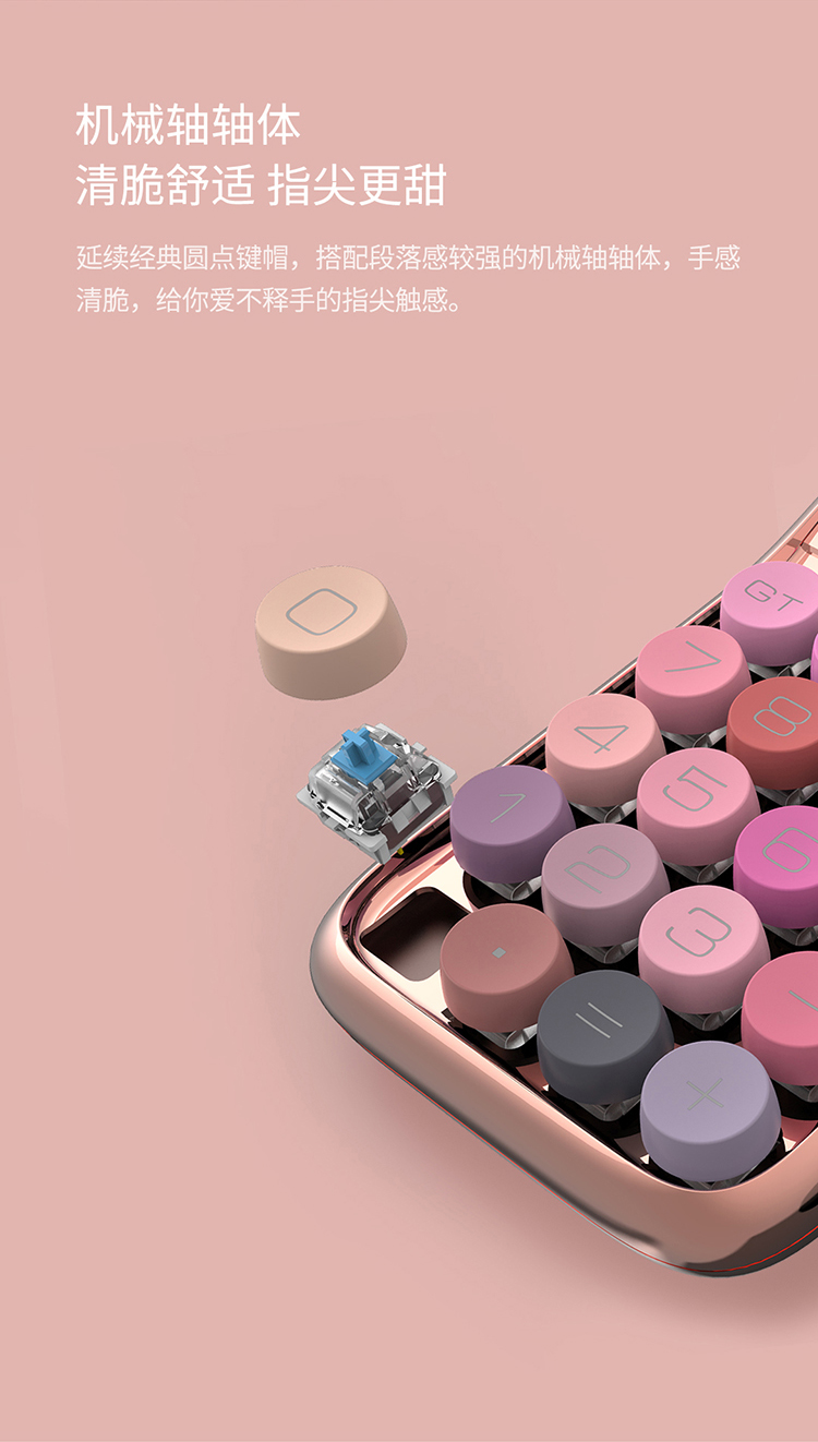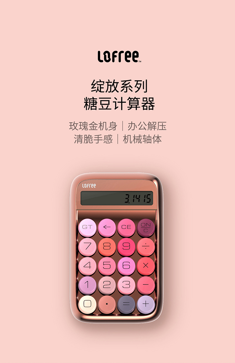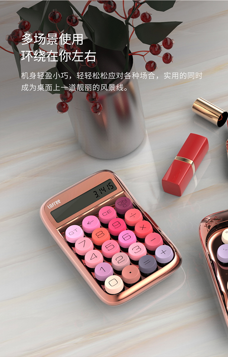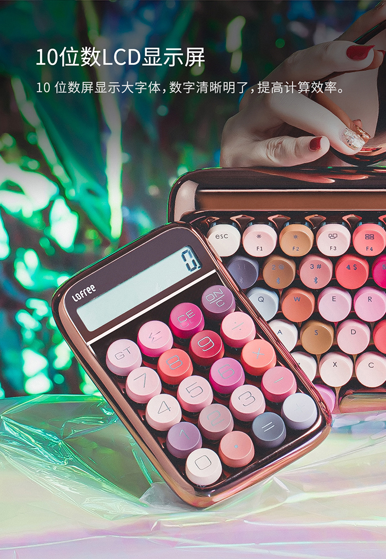 洛斐糖豆计算器EH113P玫瑰金可爱女时尚个性创意迷你小号便携机械键盘青轴打字机复古风