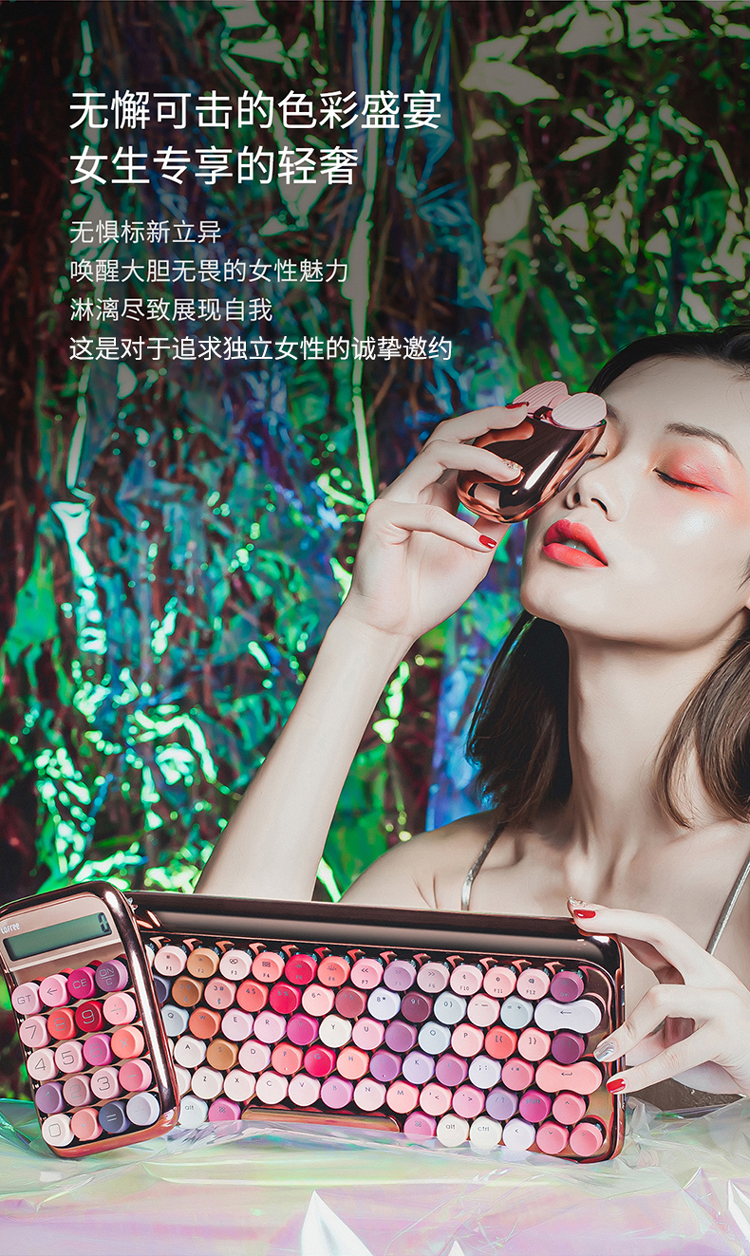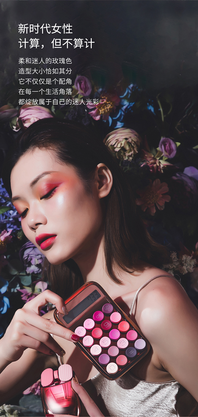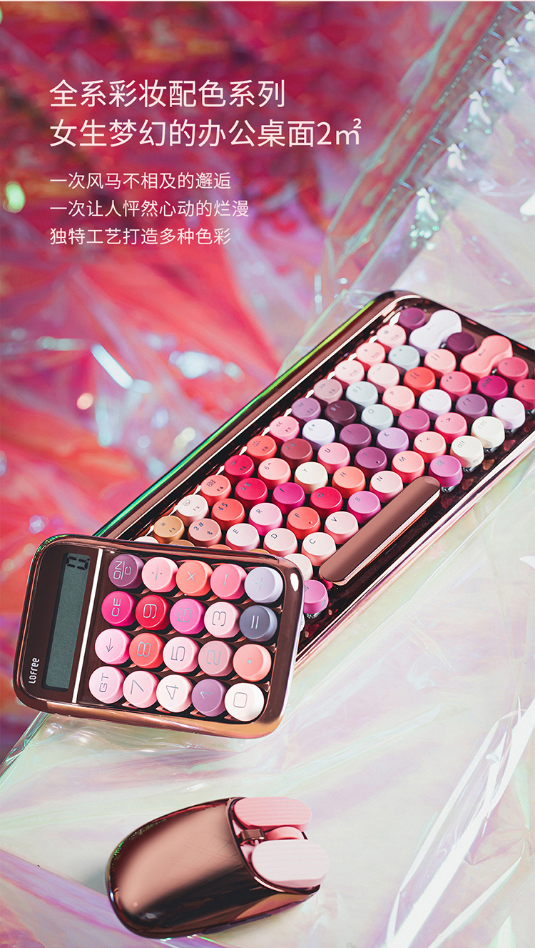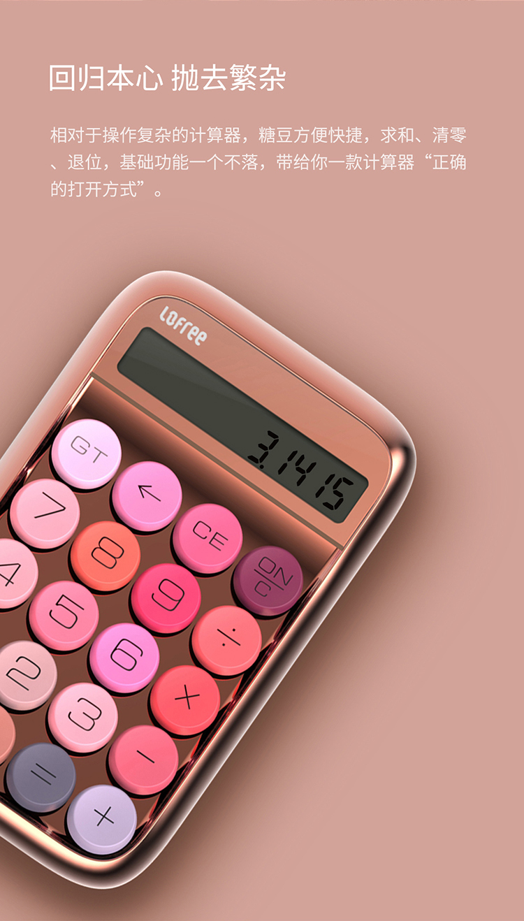 洛斐糖豆计算器EH113P玫瑰金可爱女时尚个性创意迷你小号便携机械键盘青轴打字机复古风
