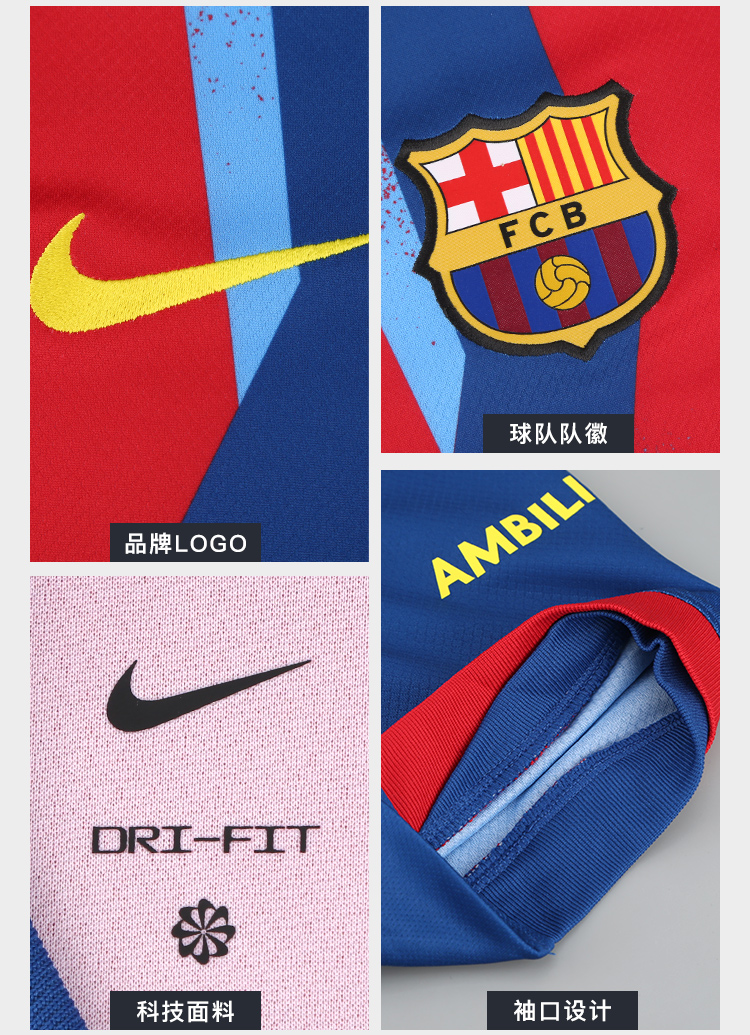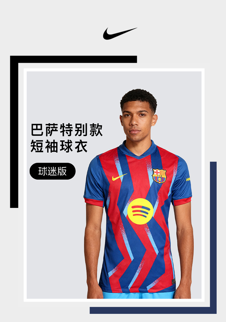 小李子NIKE耐克巴萨球迷版特别款训练短袖球衣成人男FZ1304-432