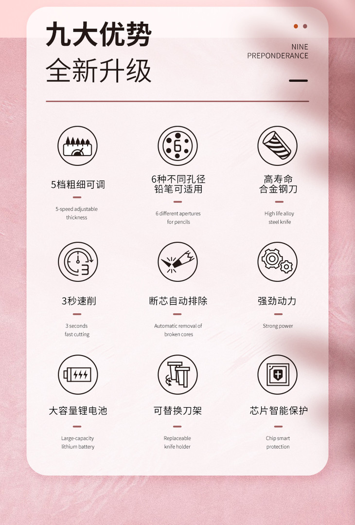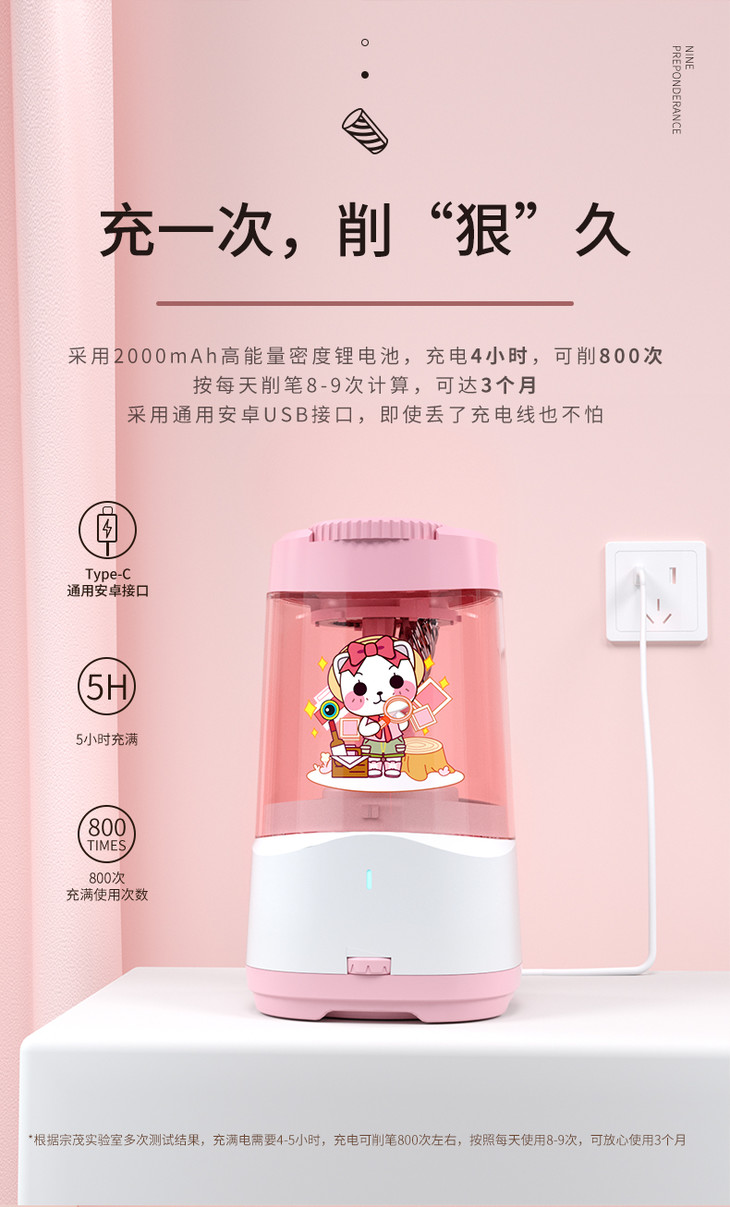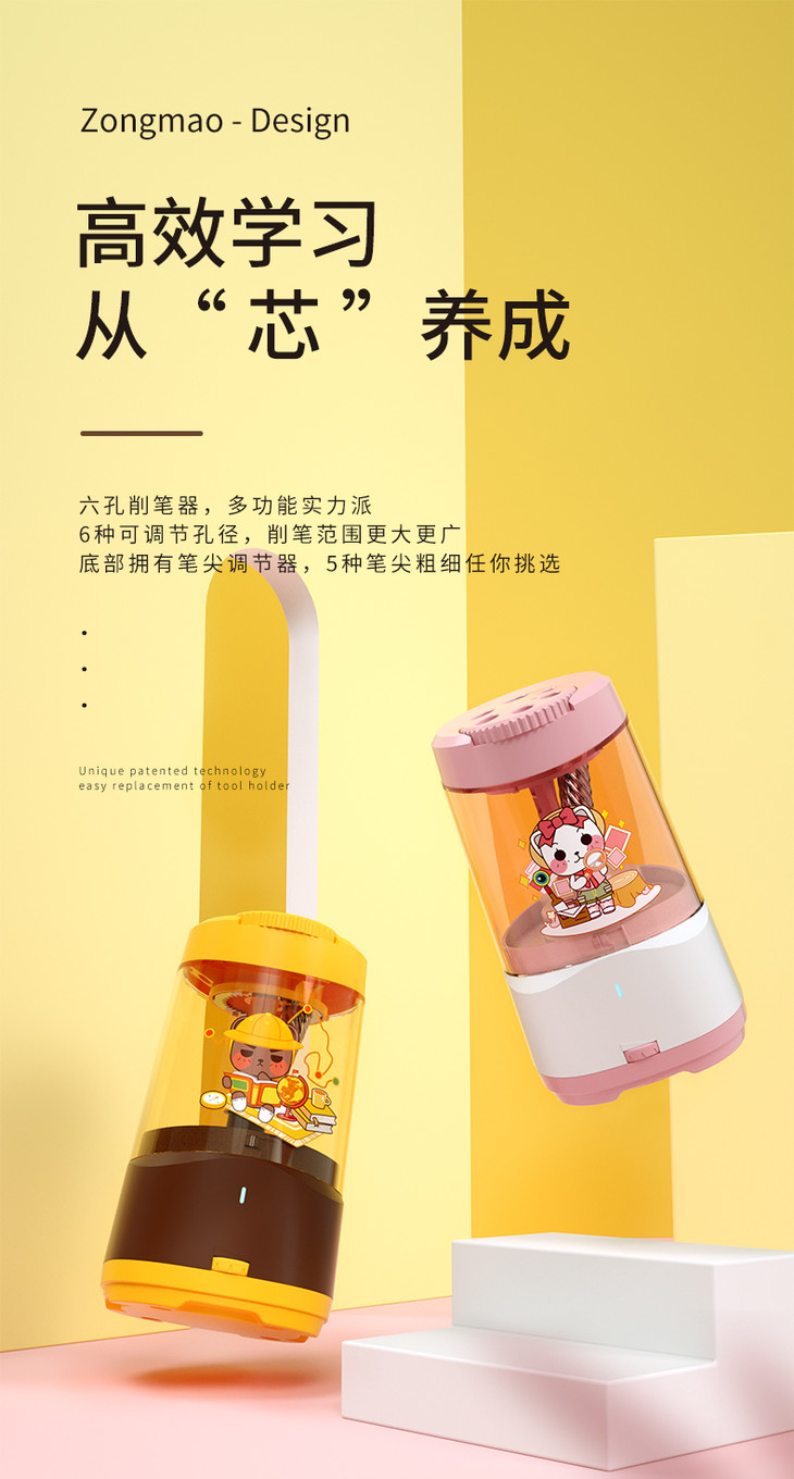 宗茂充电削笔器多孔版JY-017学习用品儿童小学生办公刨笔机