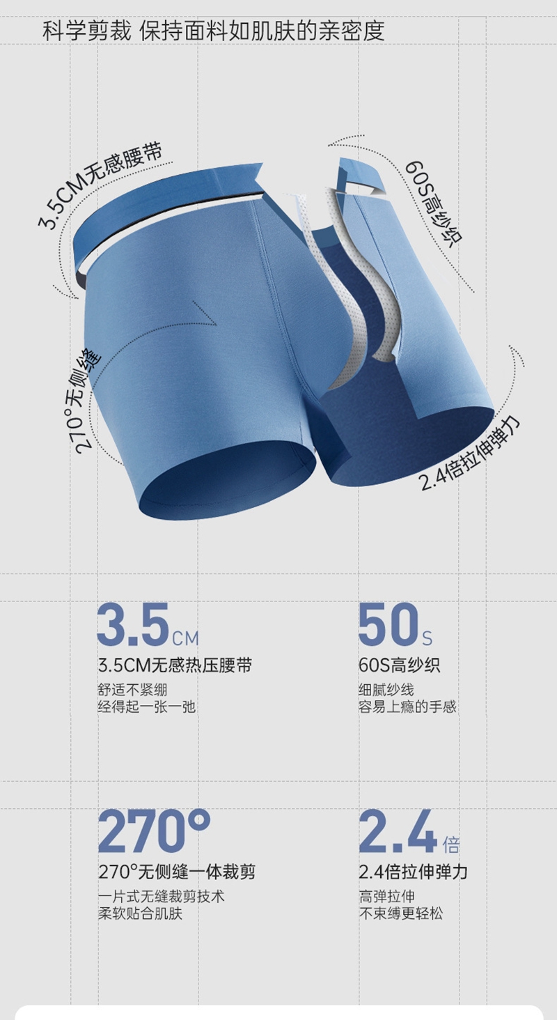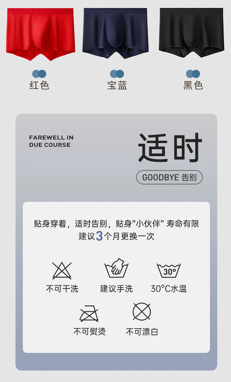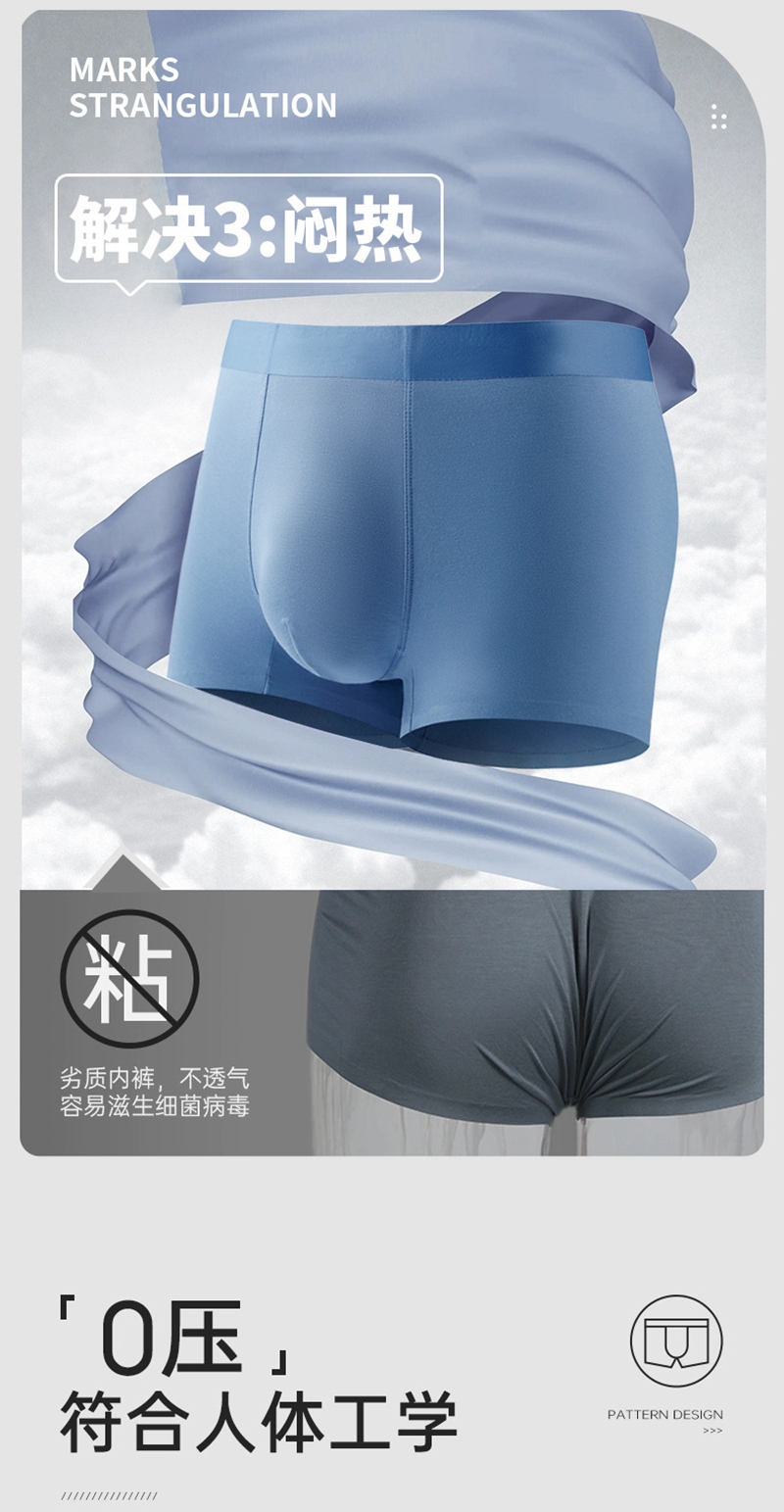 限时特惠100元/3件 男装升级版透气无痕抗菌健康男士四角内裤