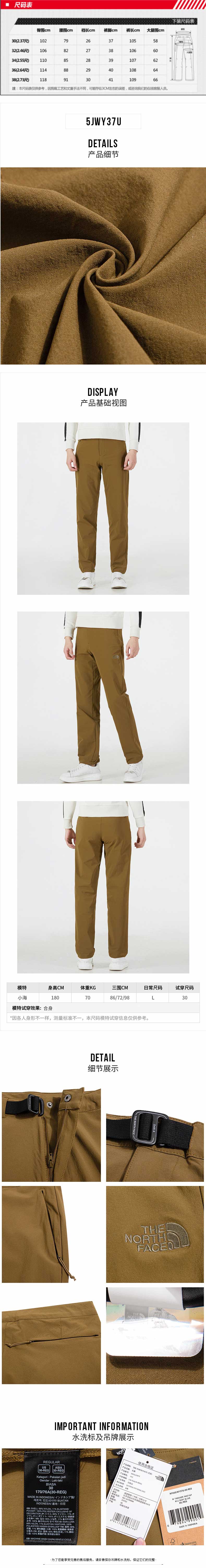 北面休闲裤男2022春季新款户外舒适透气梭织长裤NF0A5JWY
