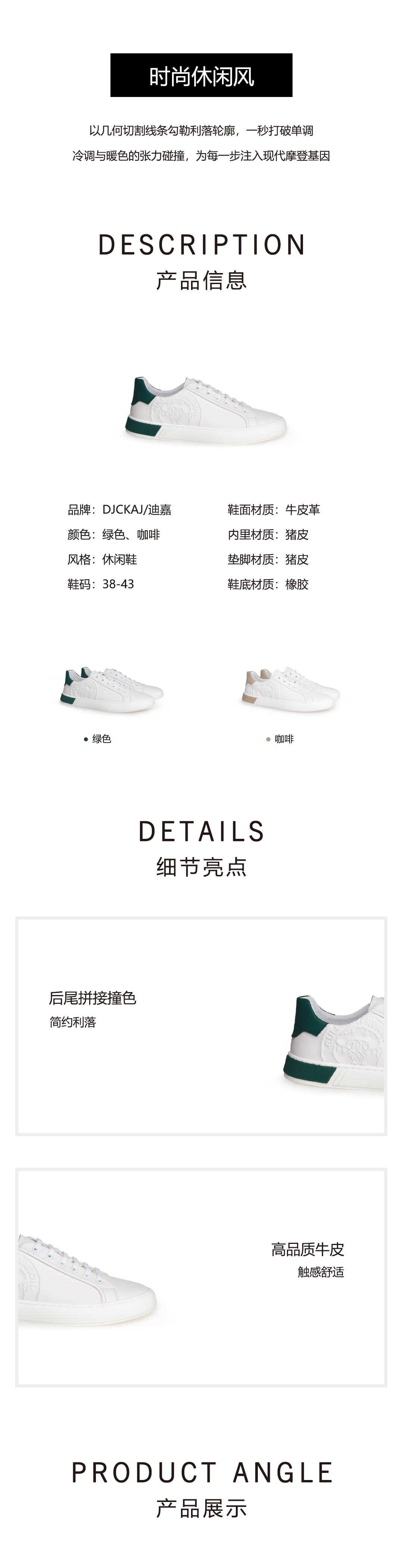 豪麟名鞋奥莱迪嘉男鞋休闲鞋牛皮革DJMMO51MX203绿色 原价1660元