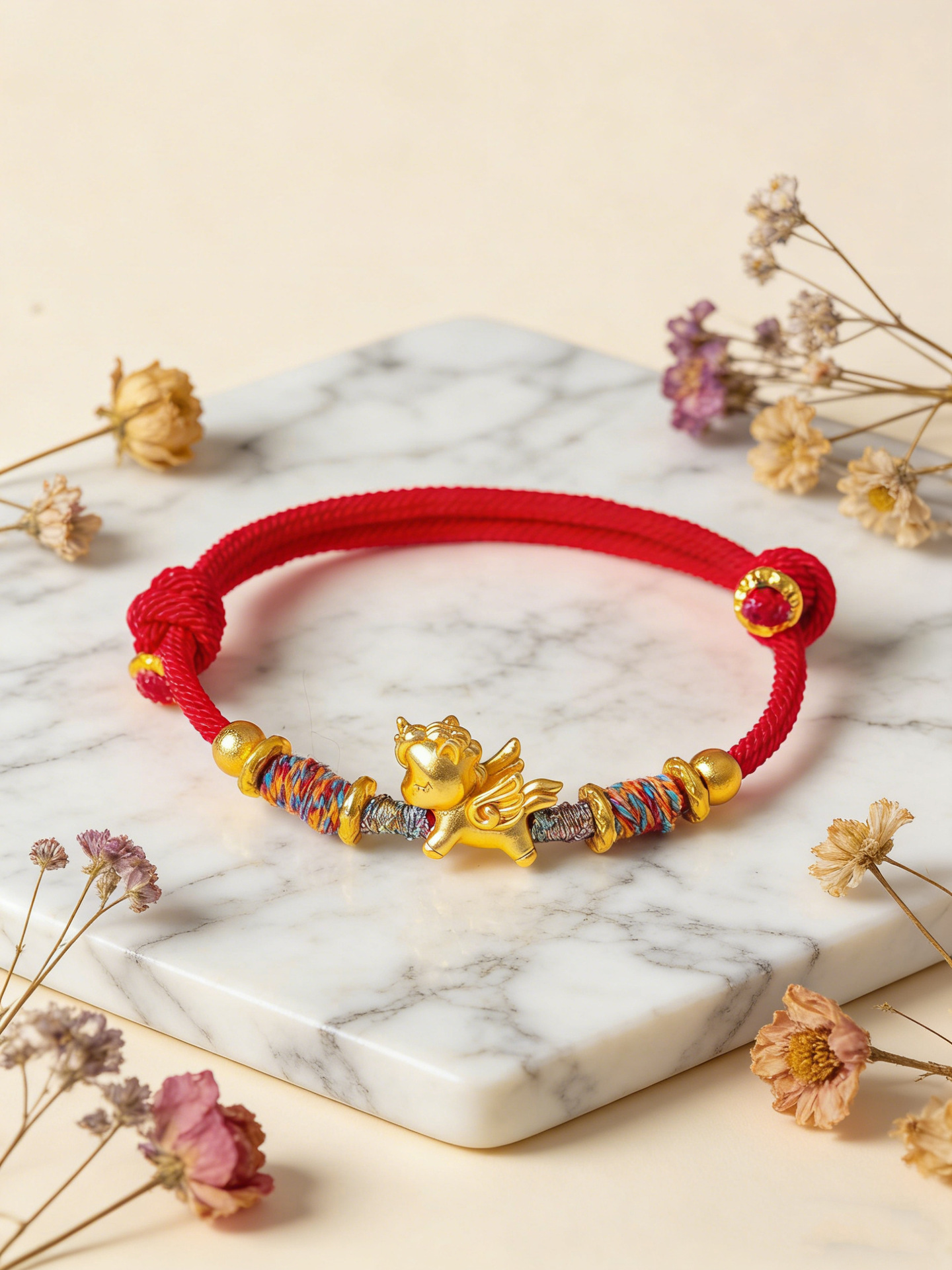 本命年 【小众设计款 天马纯银手串】马年999足银天马手工编织手绳 小众奢级感小马红绳手链 节日生日礼物