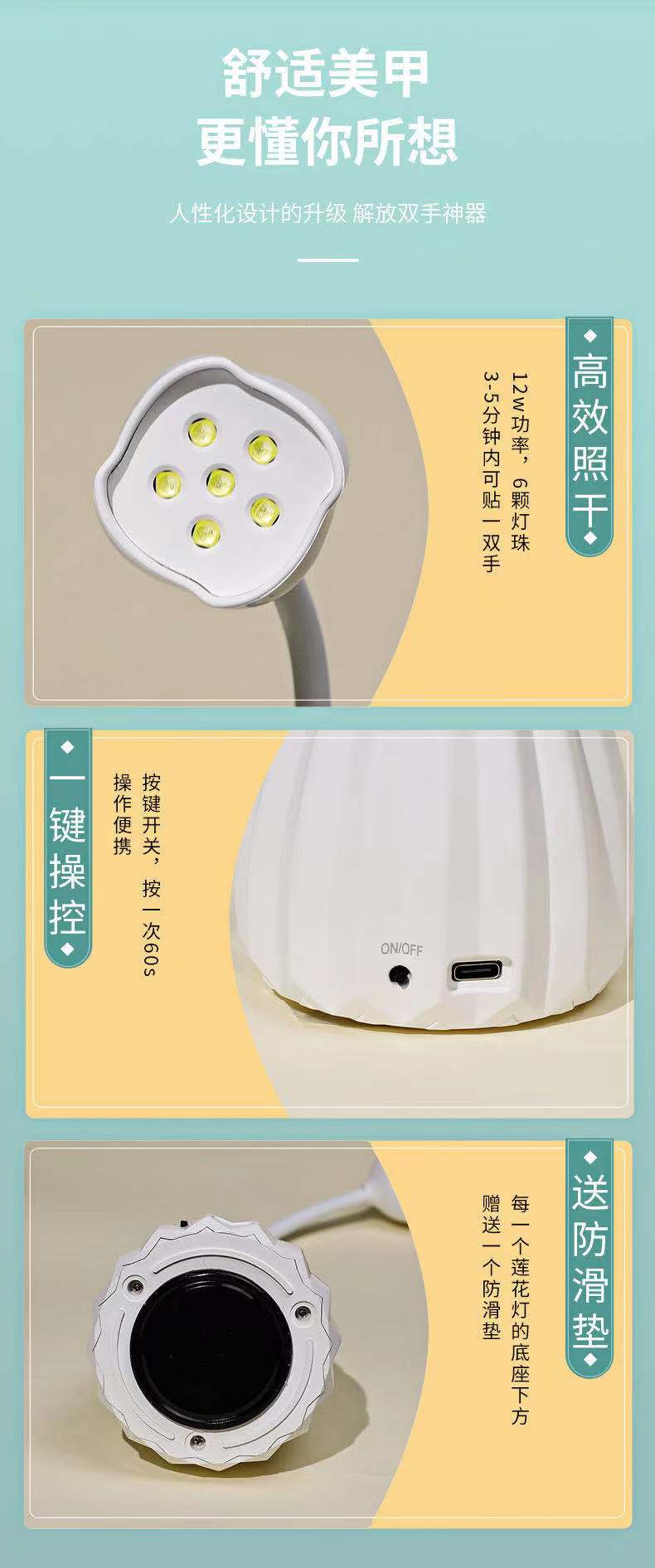 白莲花美甲灯6颗灯珠12W