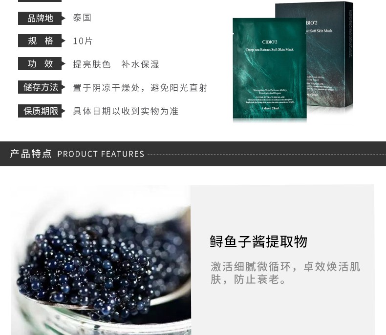 CIBIO'2 深海鲟鱼子补水保湿急救面膜 10片 泰国