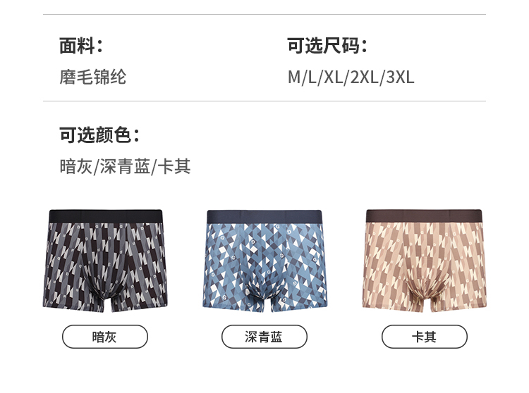 都市丽人都市锋尚内裤潮流时尚平角裤磨毛锦纶男士内裤FKTHC8