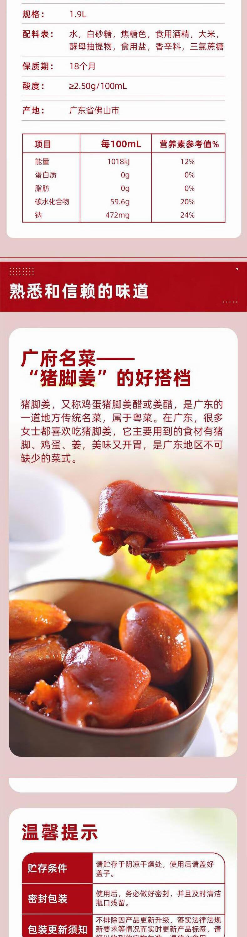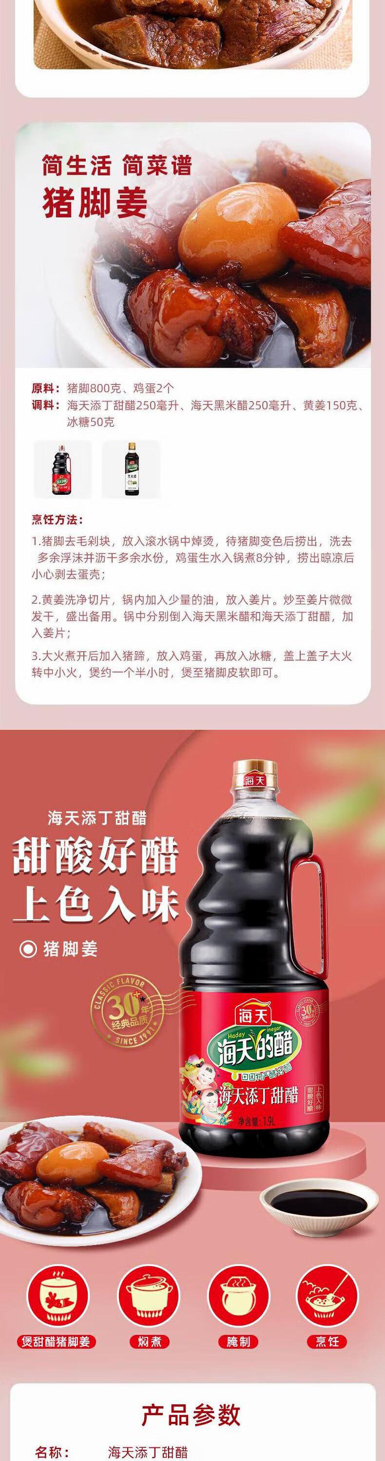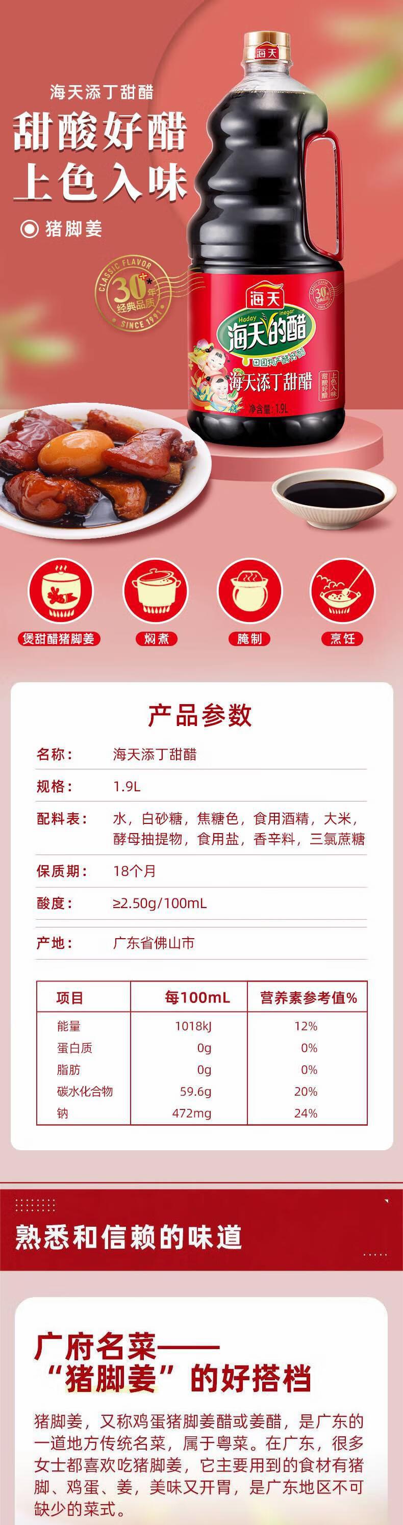 海天 添丁甜醋1.9L*1瓶陈醋白醋新鲜健康美味 KJDF-20240416-0044