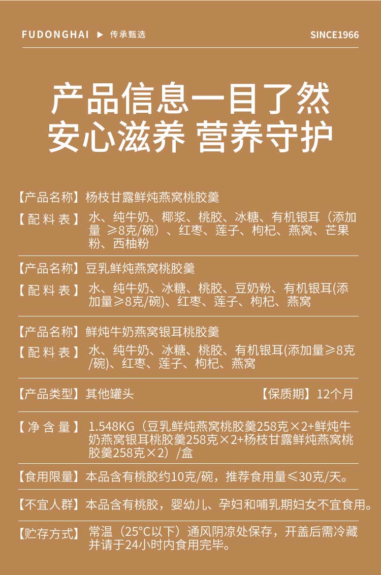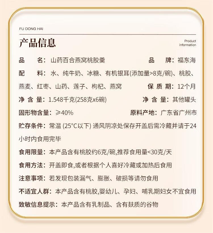 福东海 山药百合燕窝粥 1548克(258克×6罐)/盒