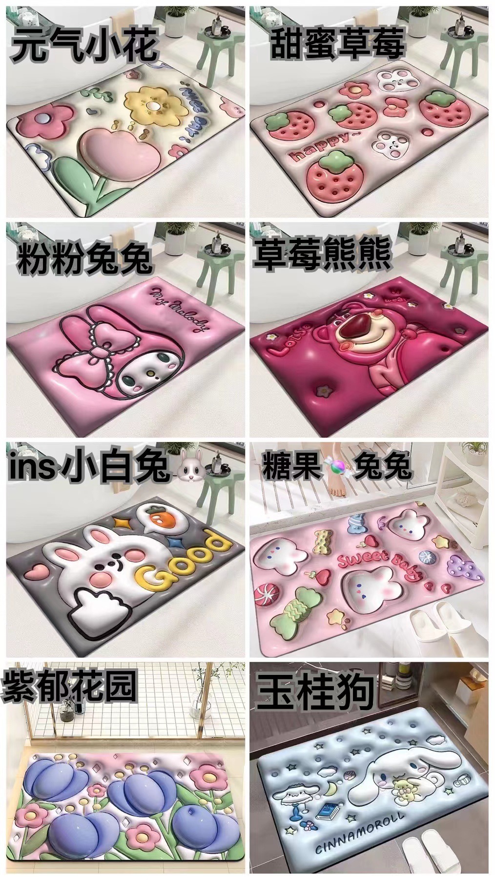 【Q弹柔软!环保亲肤】浴室防滑垫厕所卫生间地垫脚垫3D立体感膨胀小花软硅藻泥吸水地垫,纹理防滑设计,让你无需担心湿滑。ry