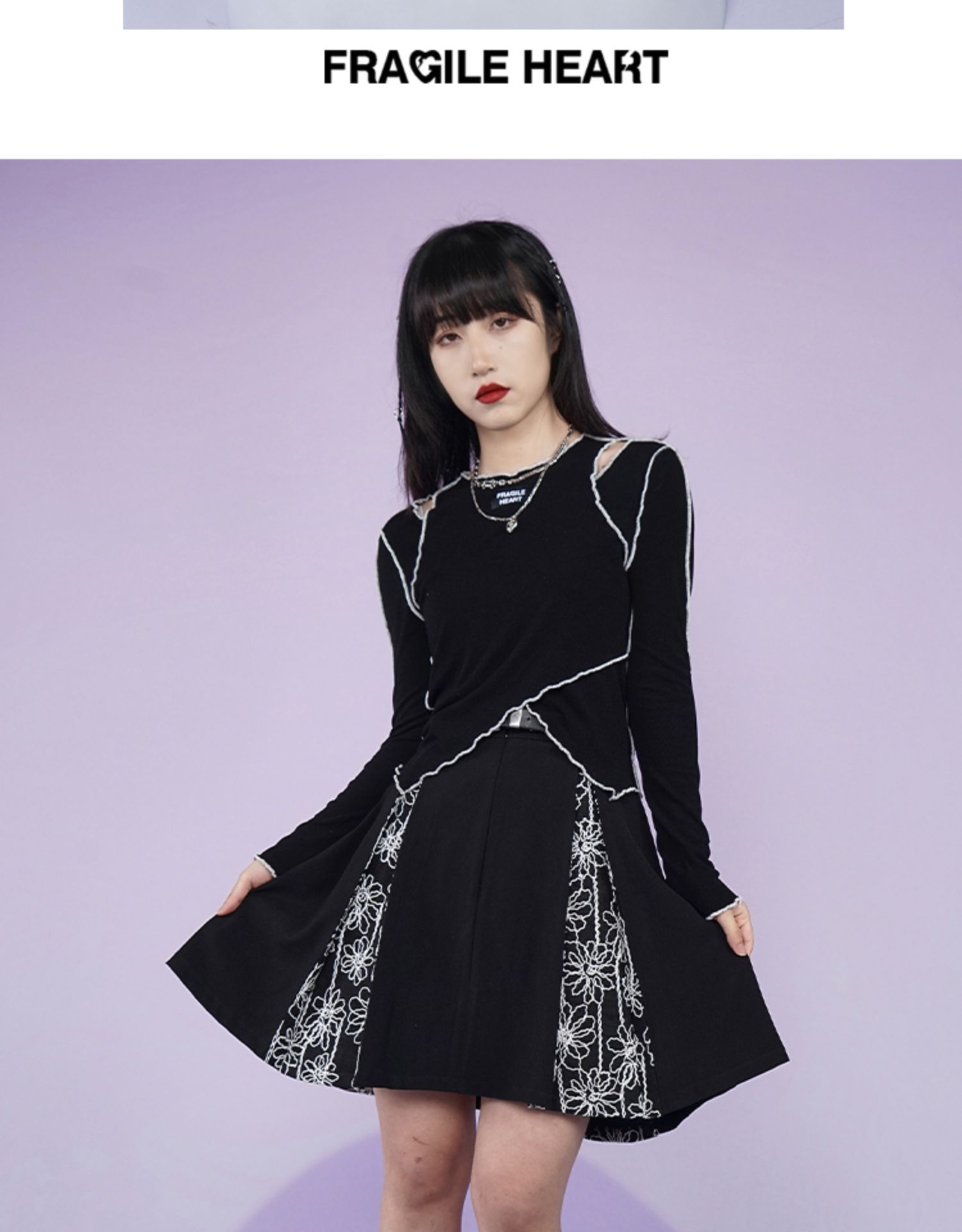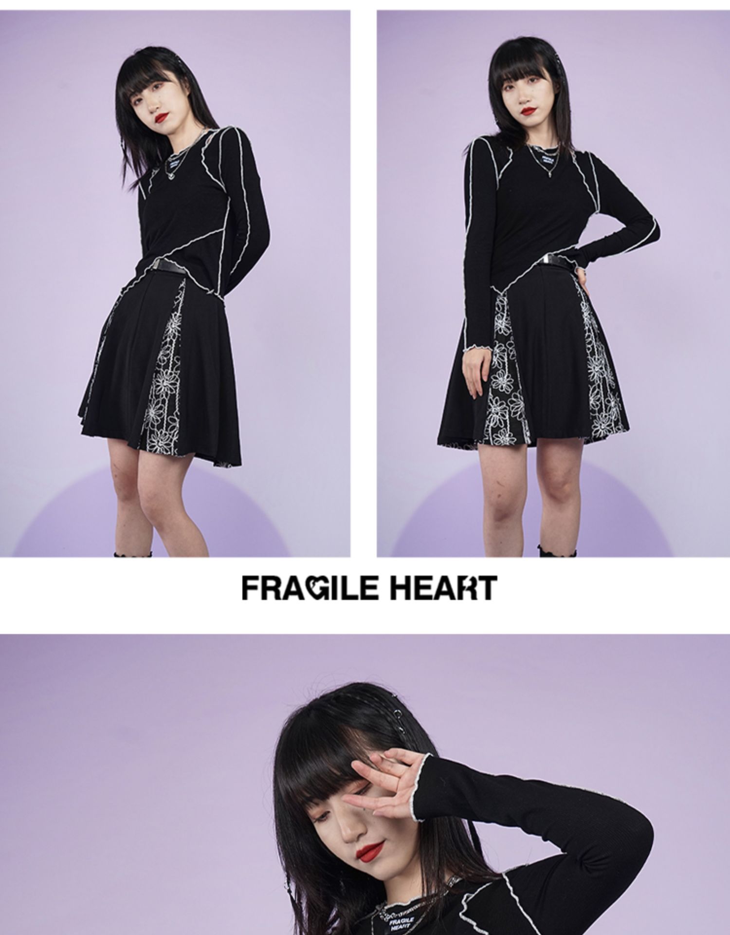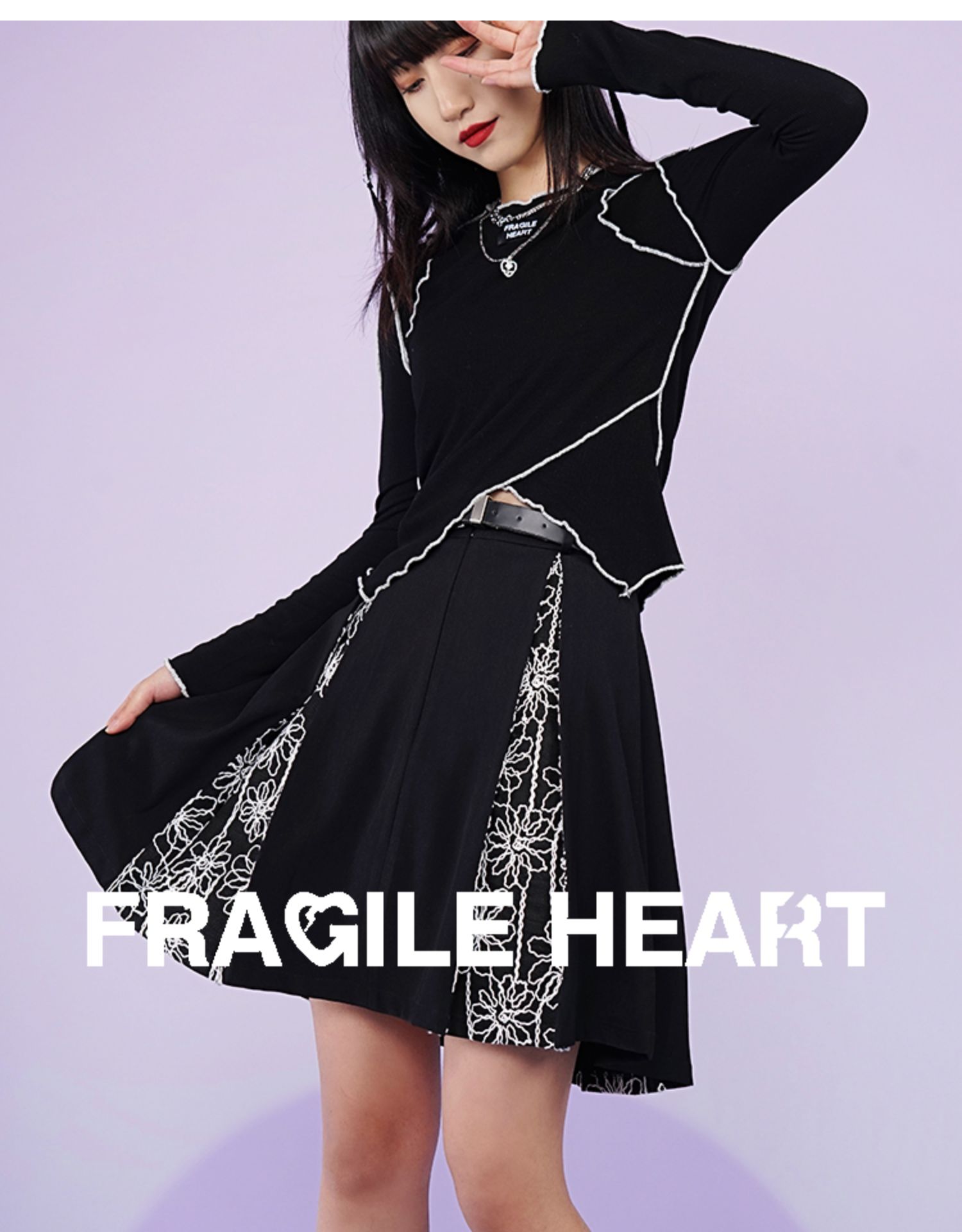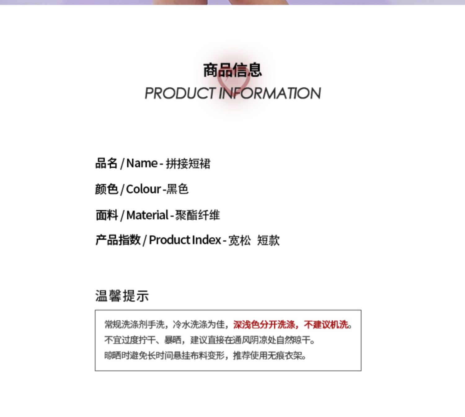 fragileheart易碎商店 春季新款拼接花色短裙a字百褶裙半身裙女