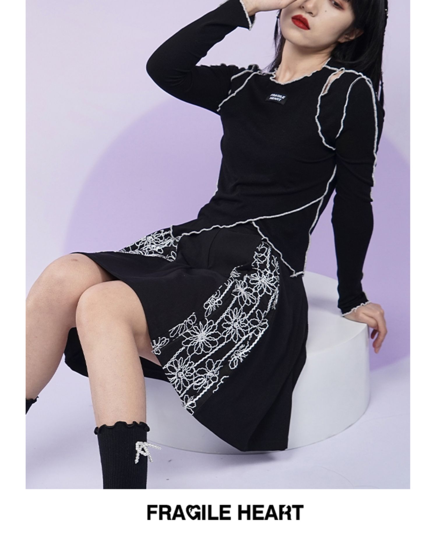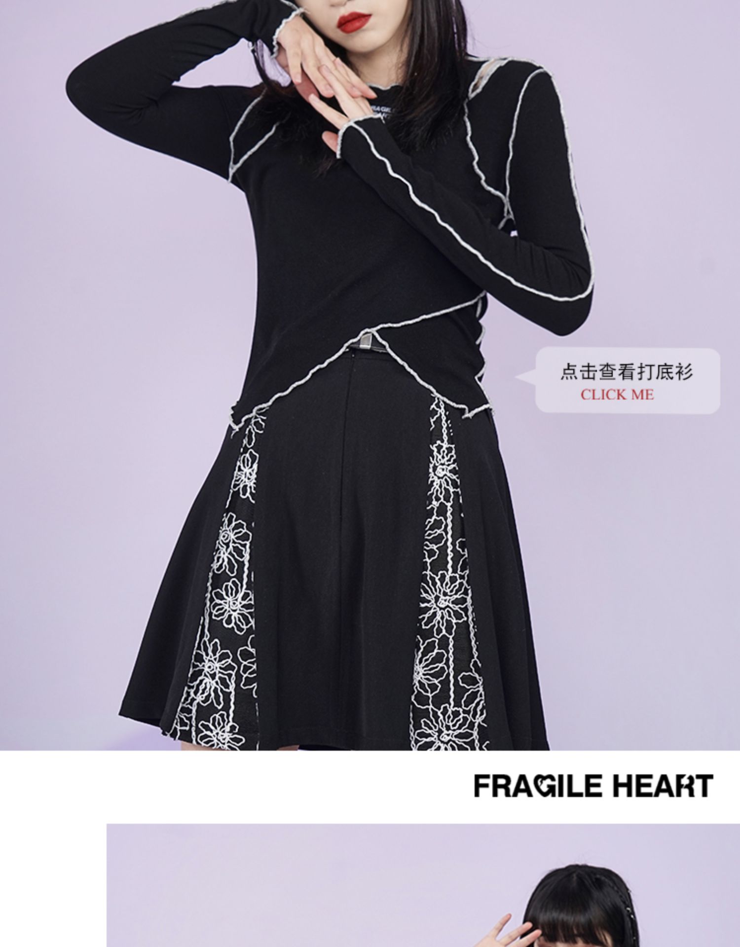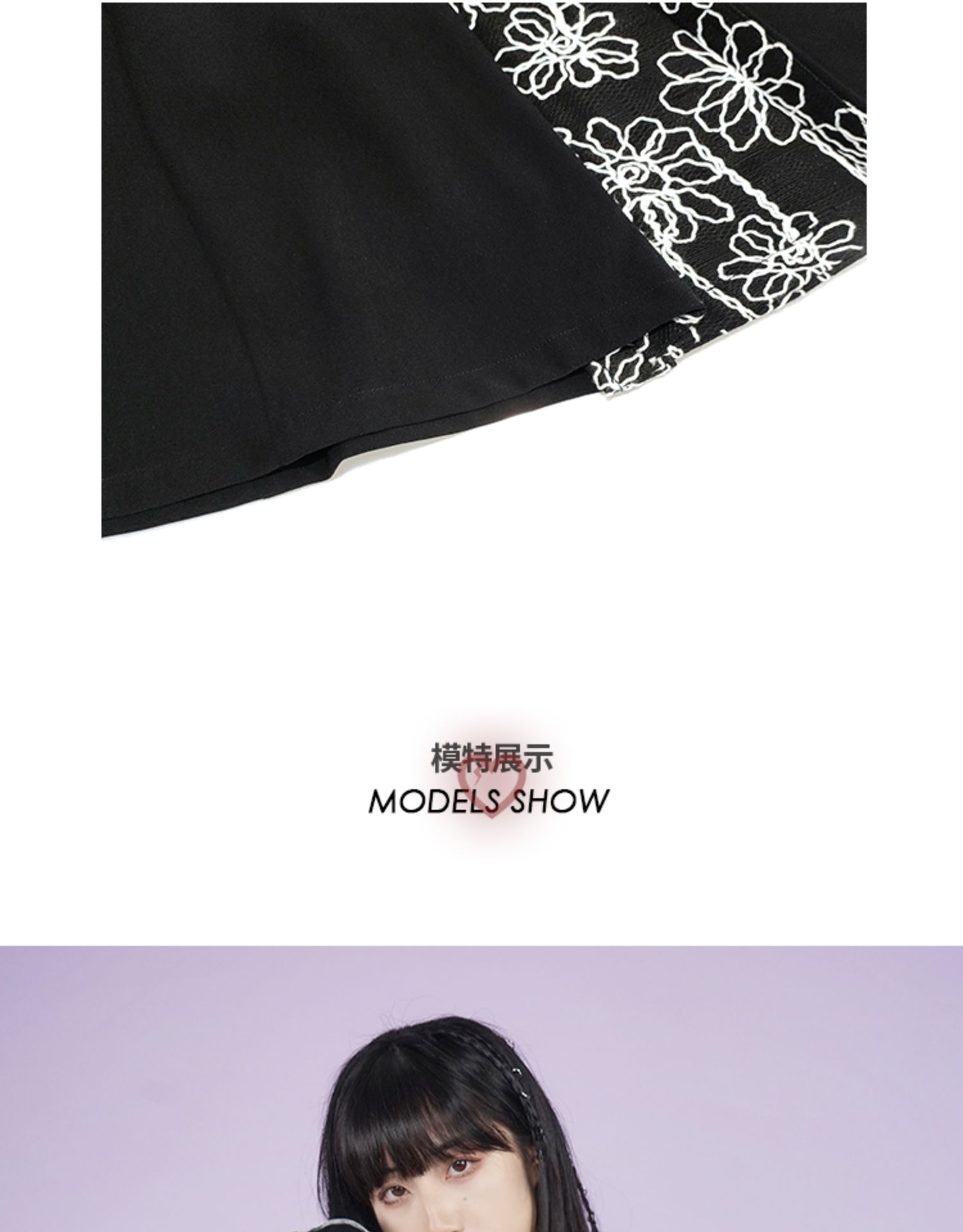 fragileheart易碎商店 春季新款拼接花色短裙a字百褶裙半身裙女