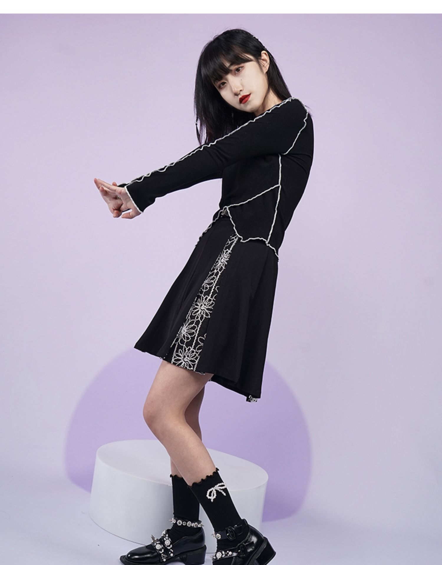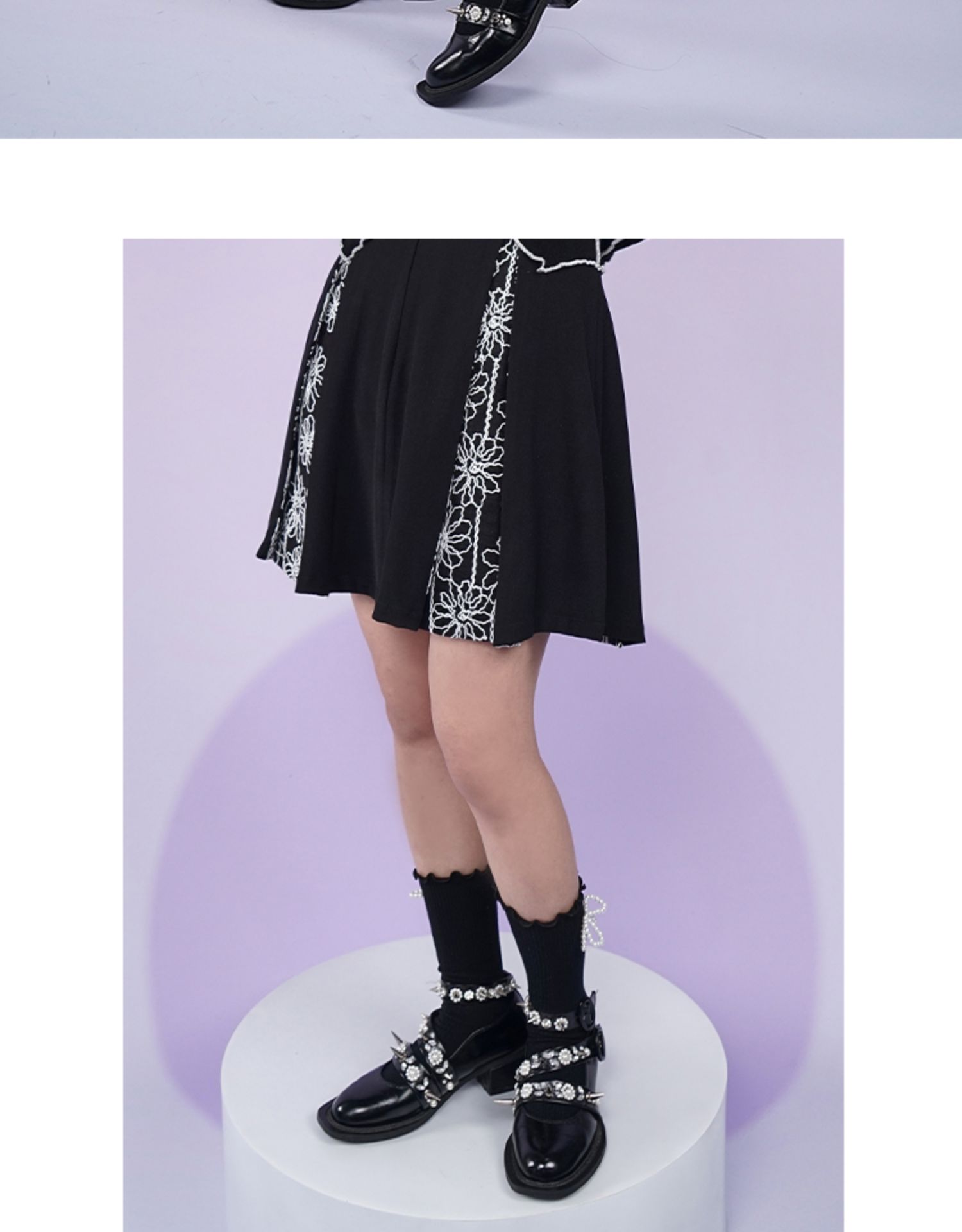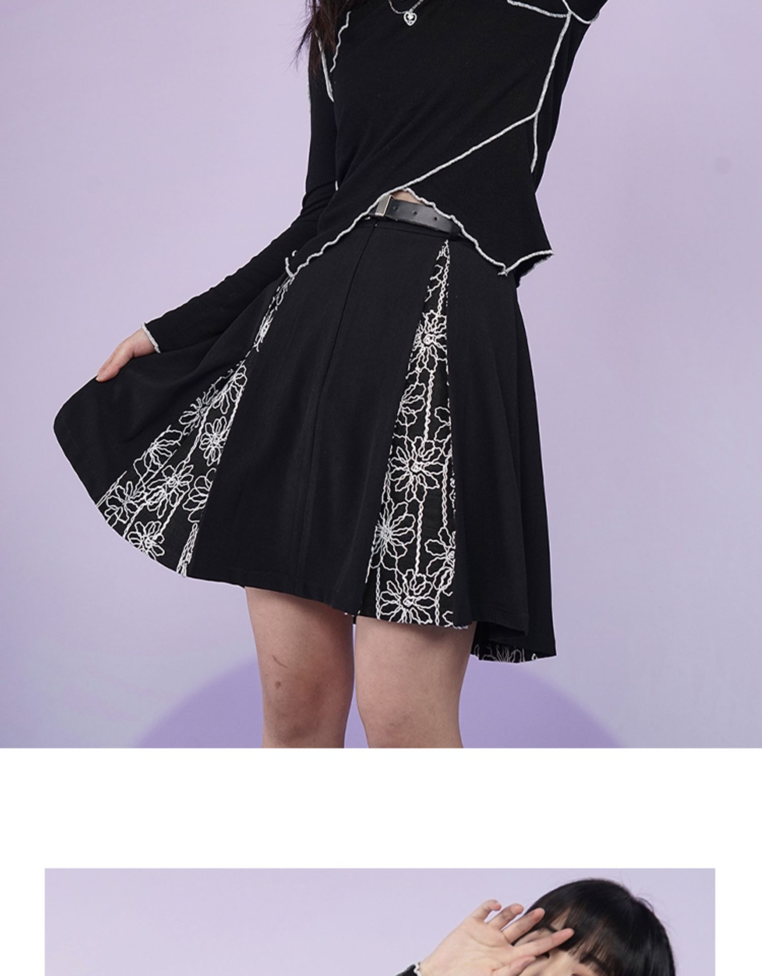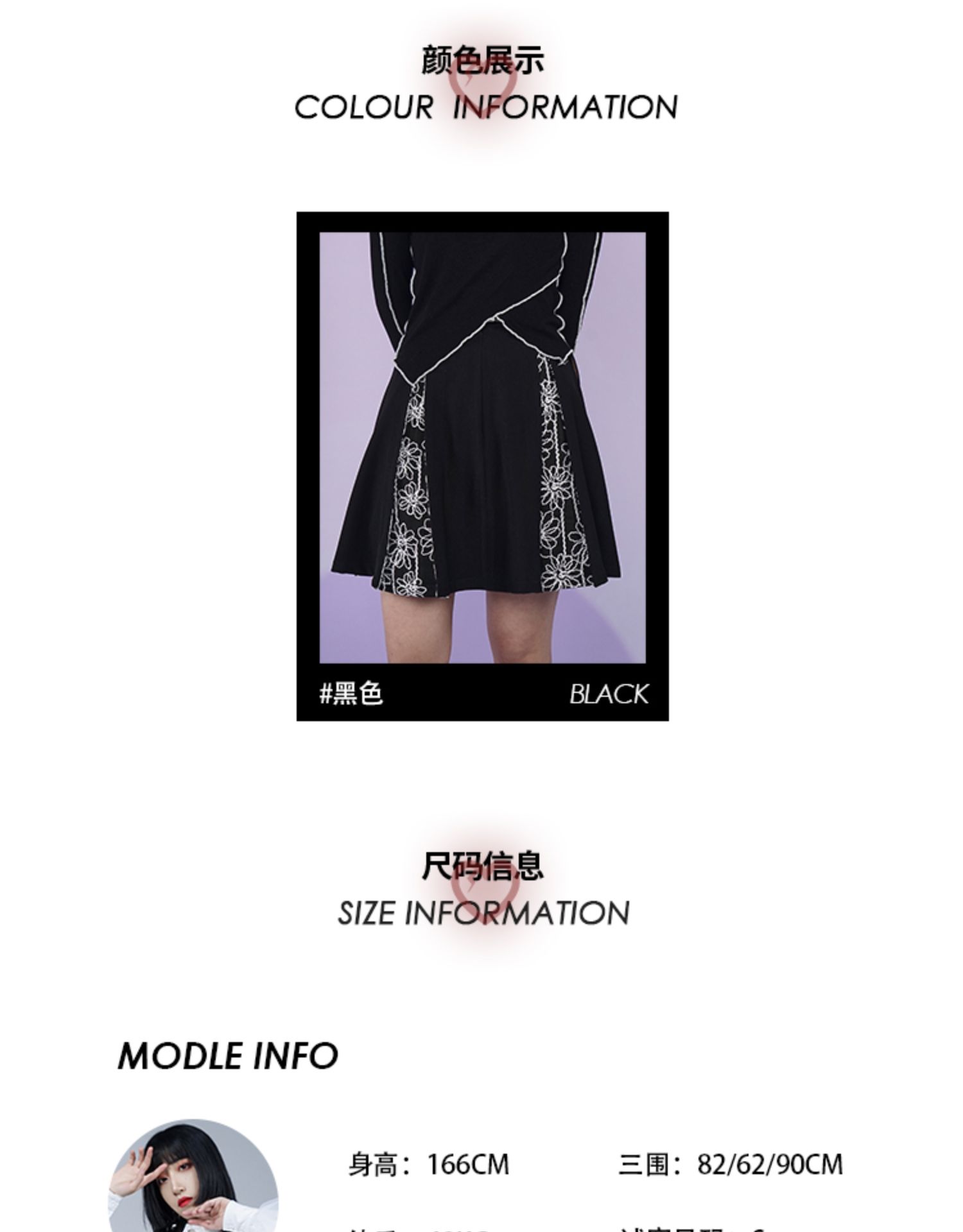 fragileheart易碎商店 春季新款拼接花色短裙a字百褶裙半身裙女