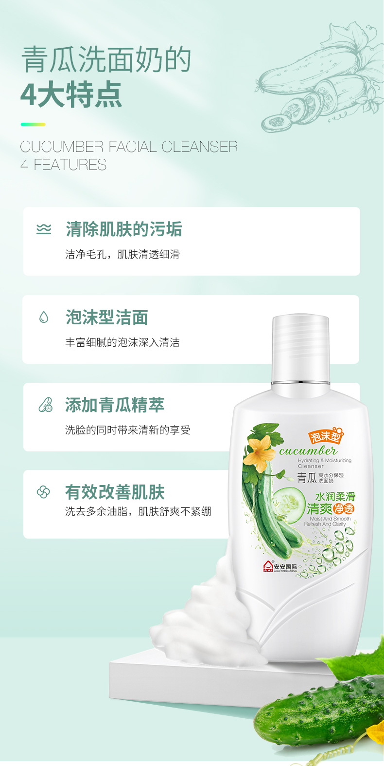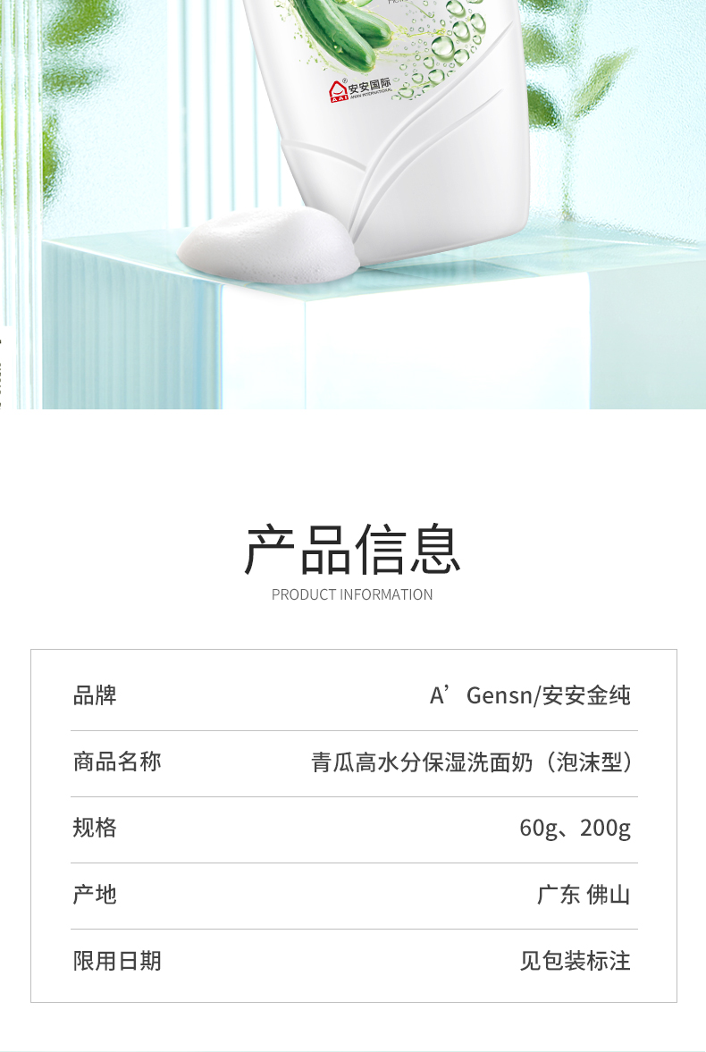 安安金纯 200g青瓜高水分保湿洗面奶(泡沫型)*2