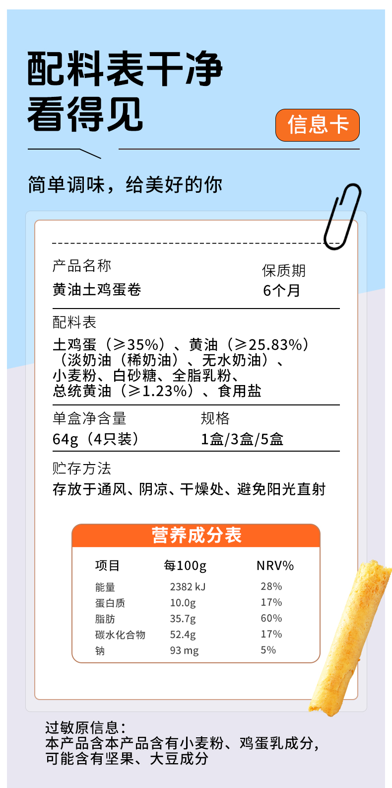 【杨博士自营】黄油土鸡蛋卷酥脆可口健康零食