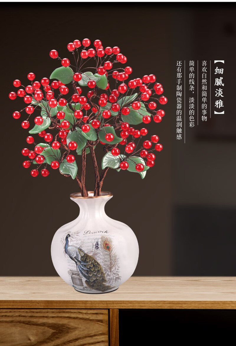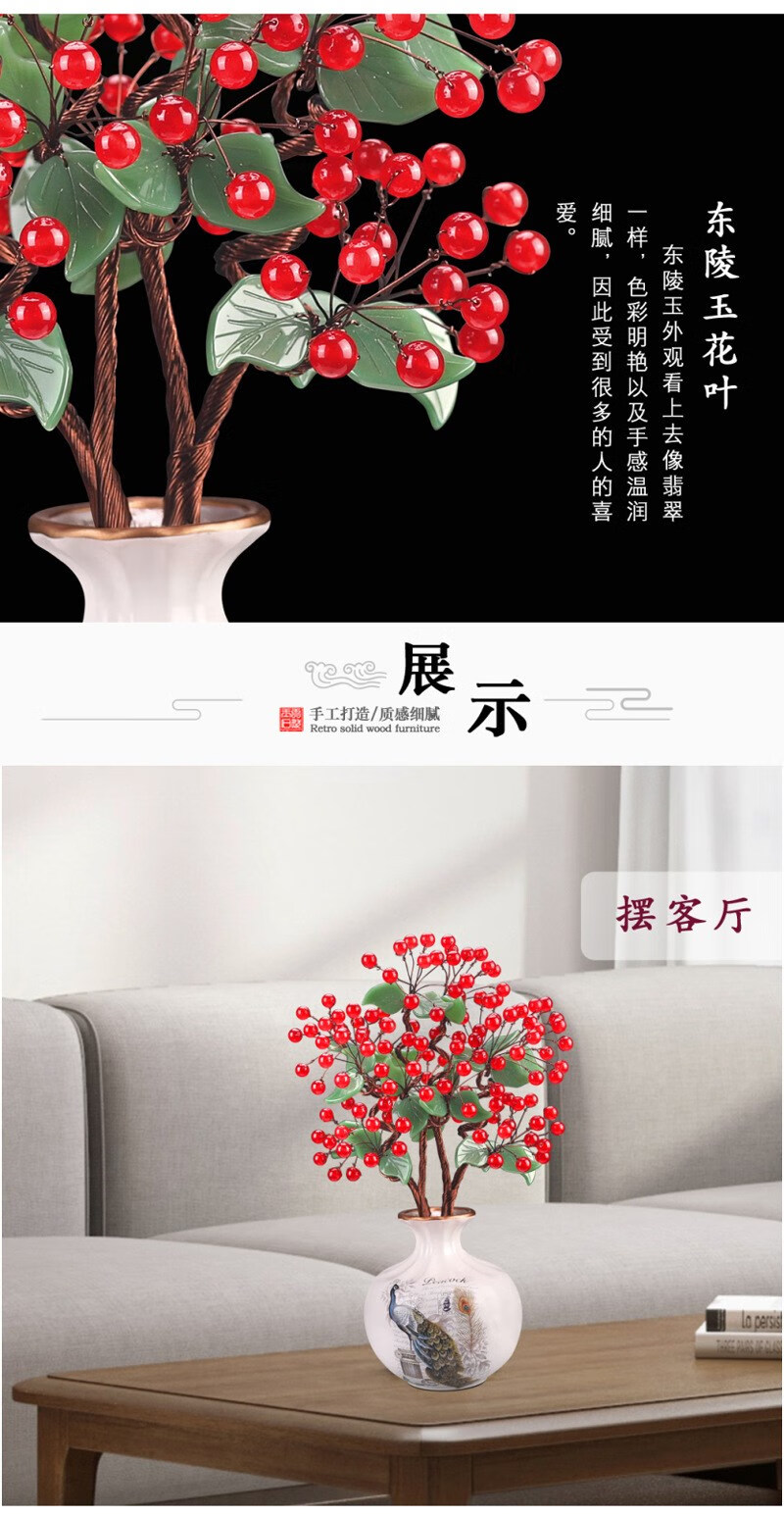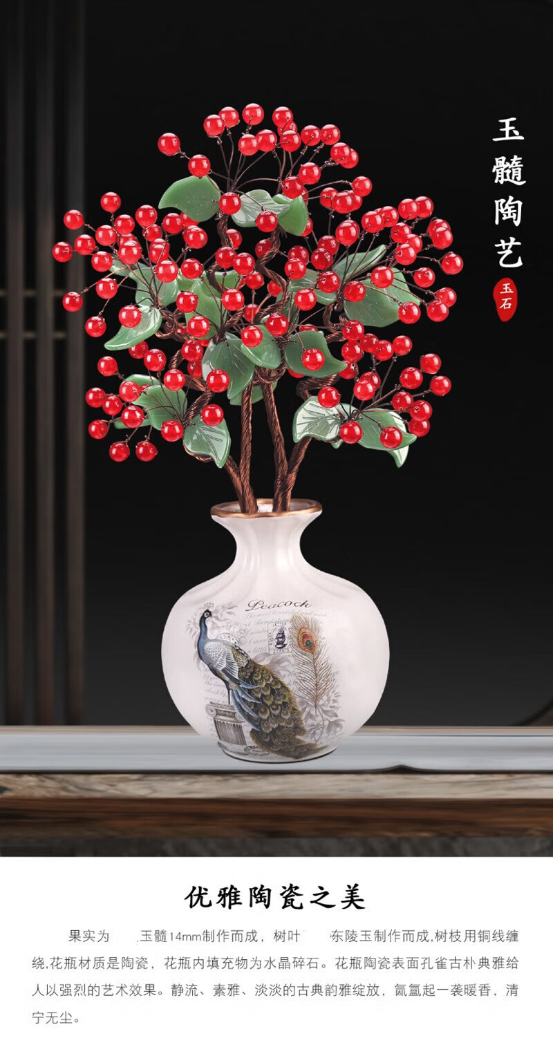晶石小镇玉石树客厅创意饰品玄关酒柜客厅玄关工艺品玉髓玉雕玉器摆件 白色