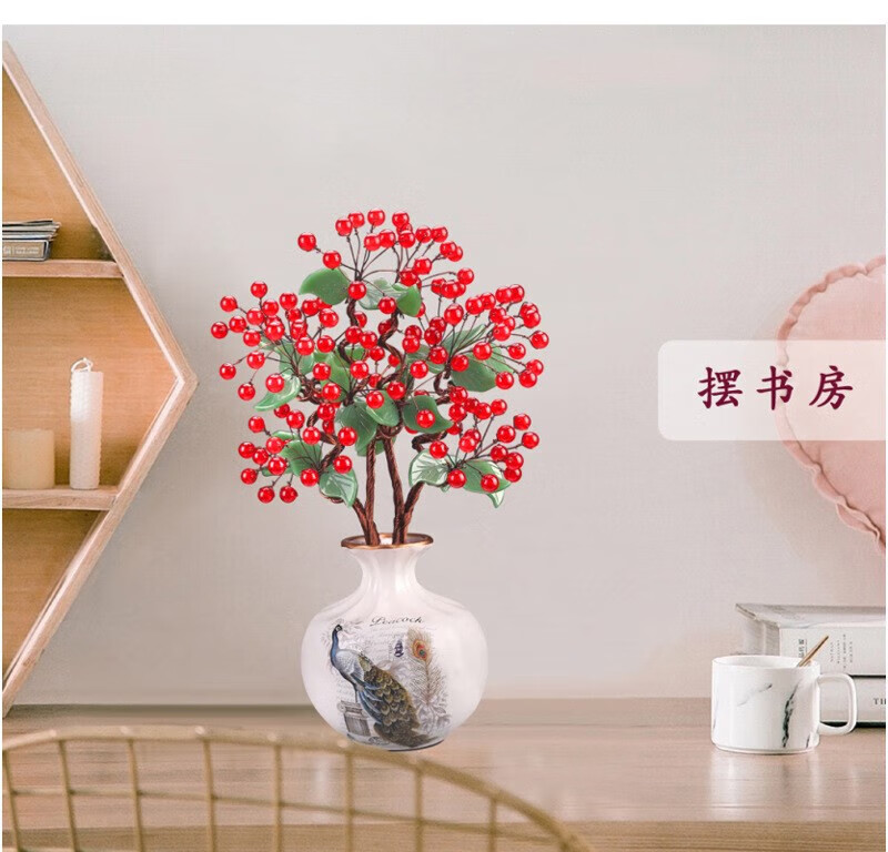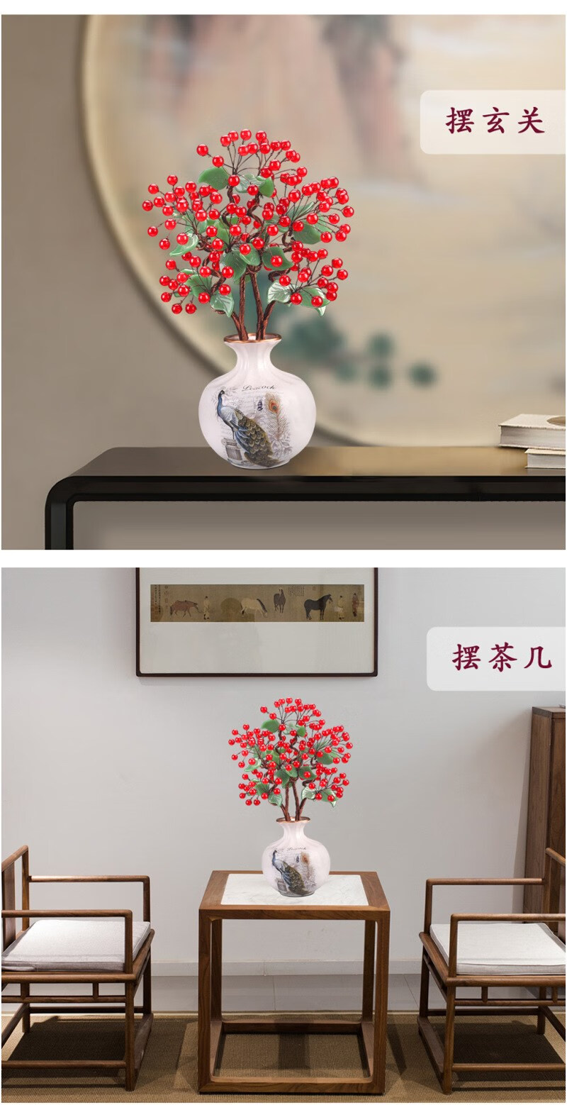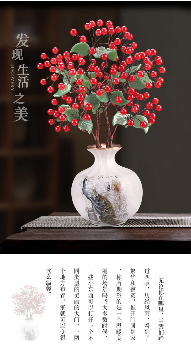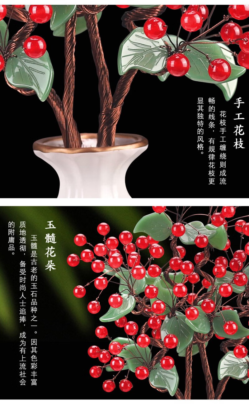 晶石小镇玉石树客厅创意饰品玄关酒柜客厅玄关工艺品玉髓玉雕玉器摆件 白色