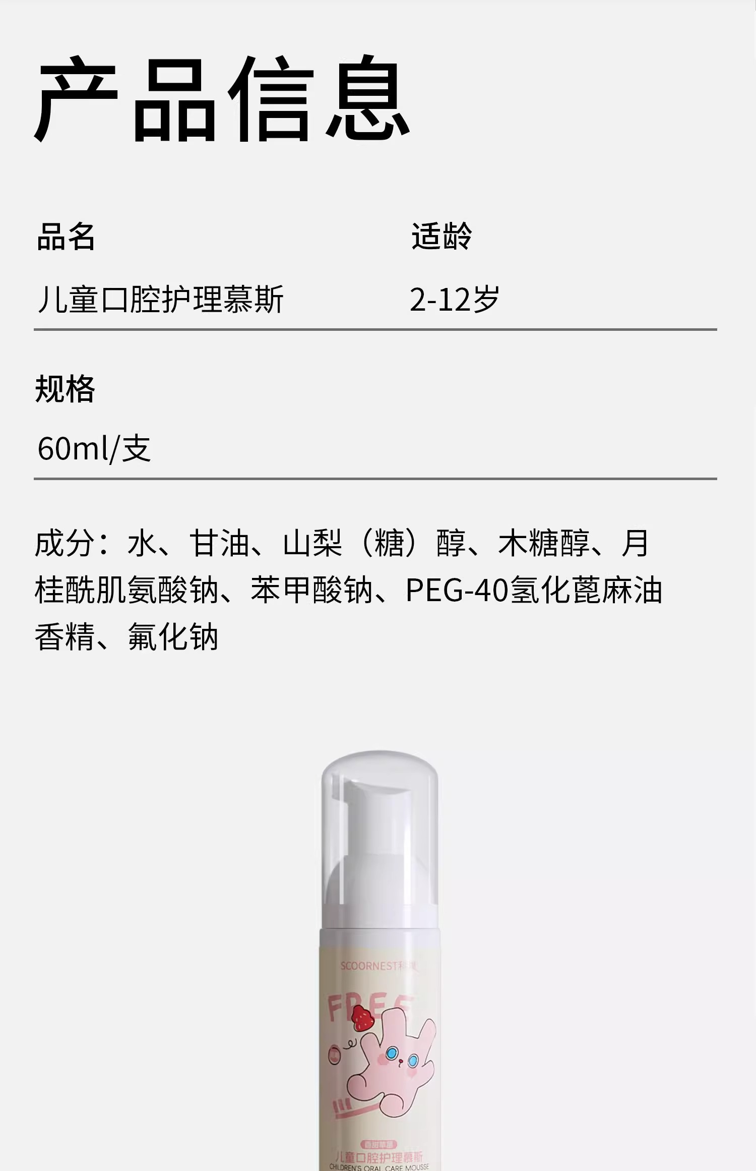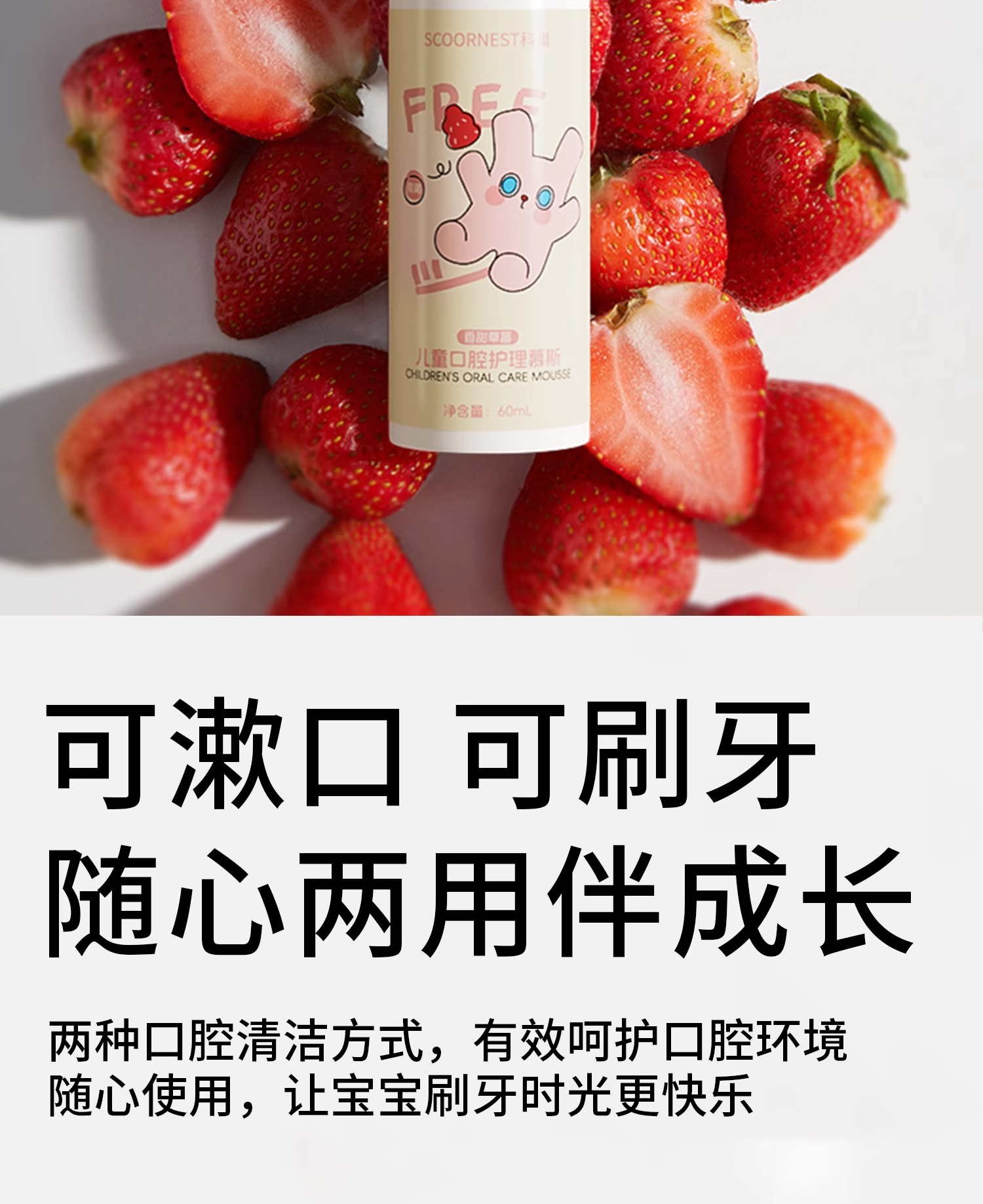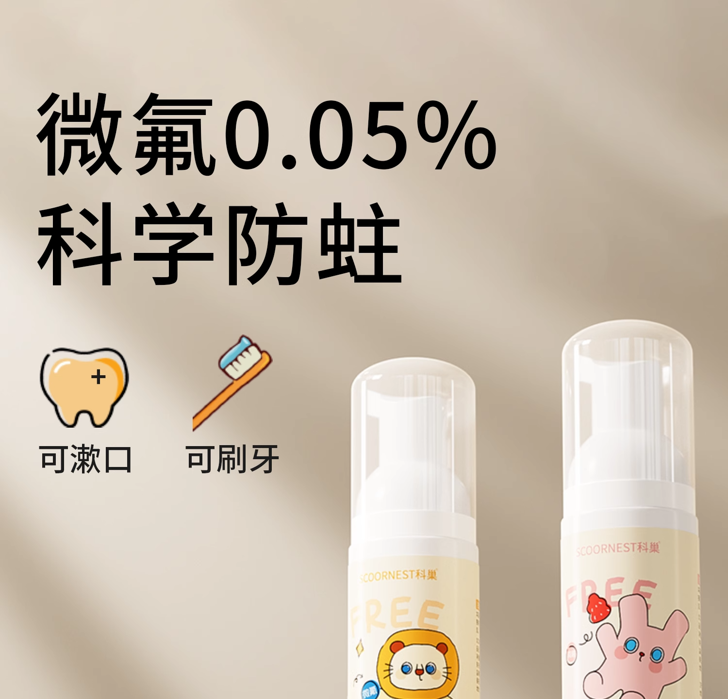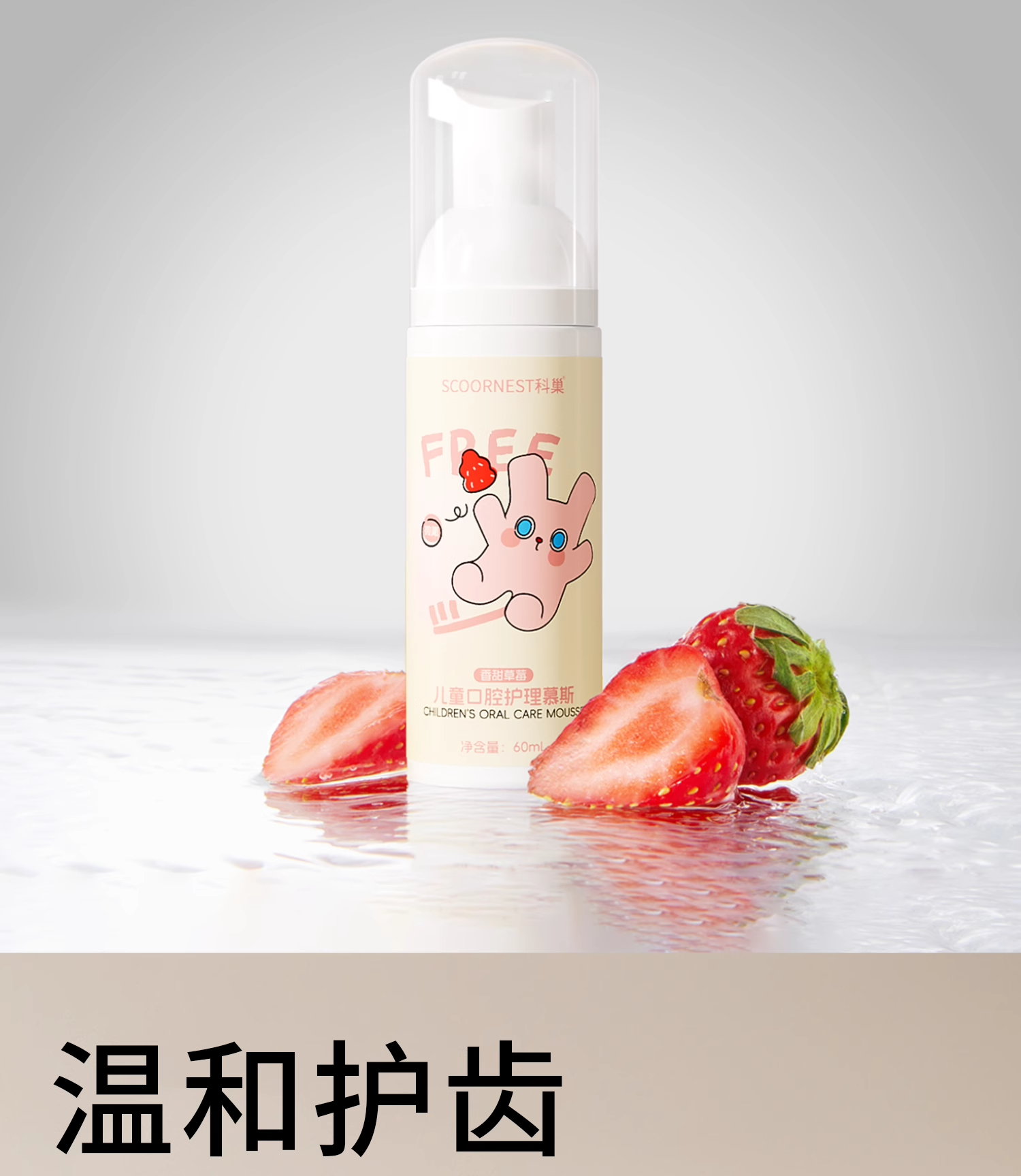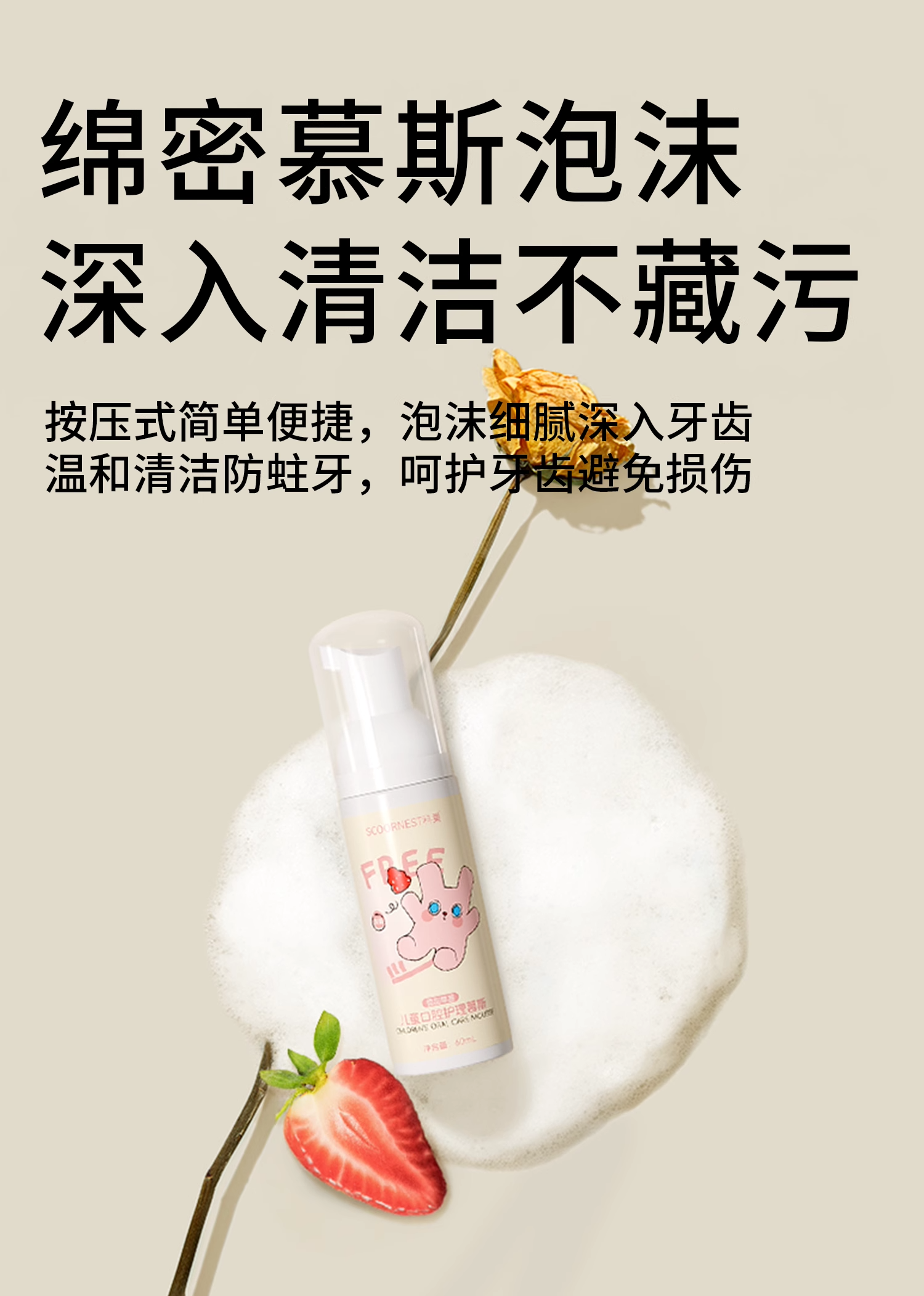 科巢儿童慕斯泡沫宝宝牙膏3-6岁一12婴儿泡沫型2不可吞咽无氟低氟