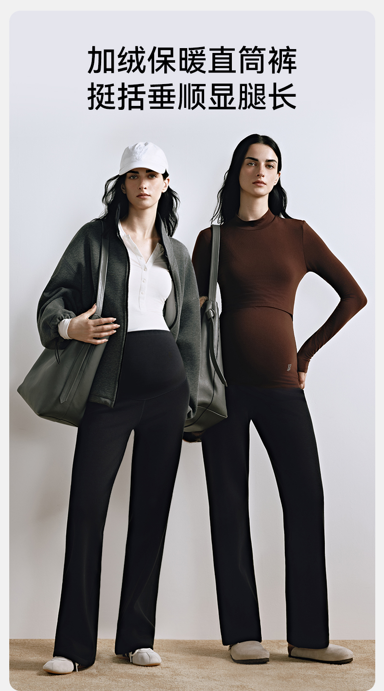 【限时会员价】嫚熙孕妇休闲裤秋冬加绒保暖直筒裤女高弹不勒肚通勤百搭2025新款