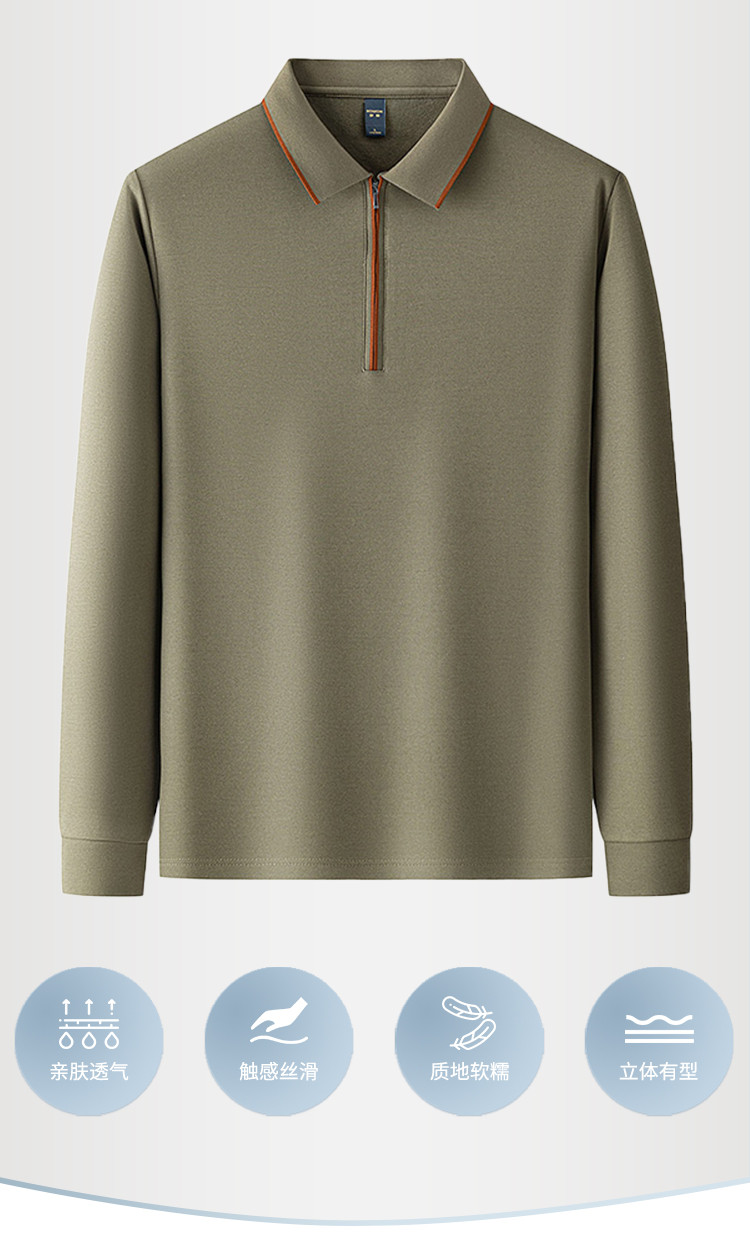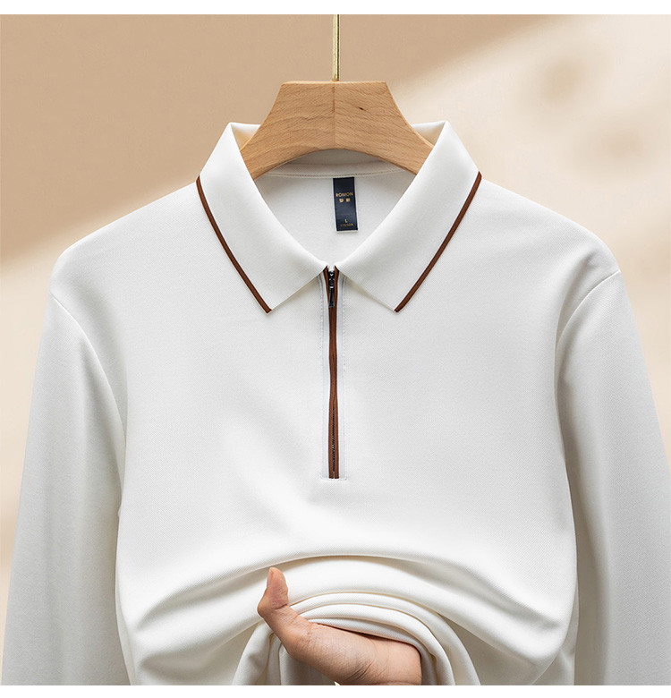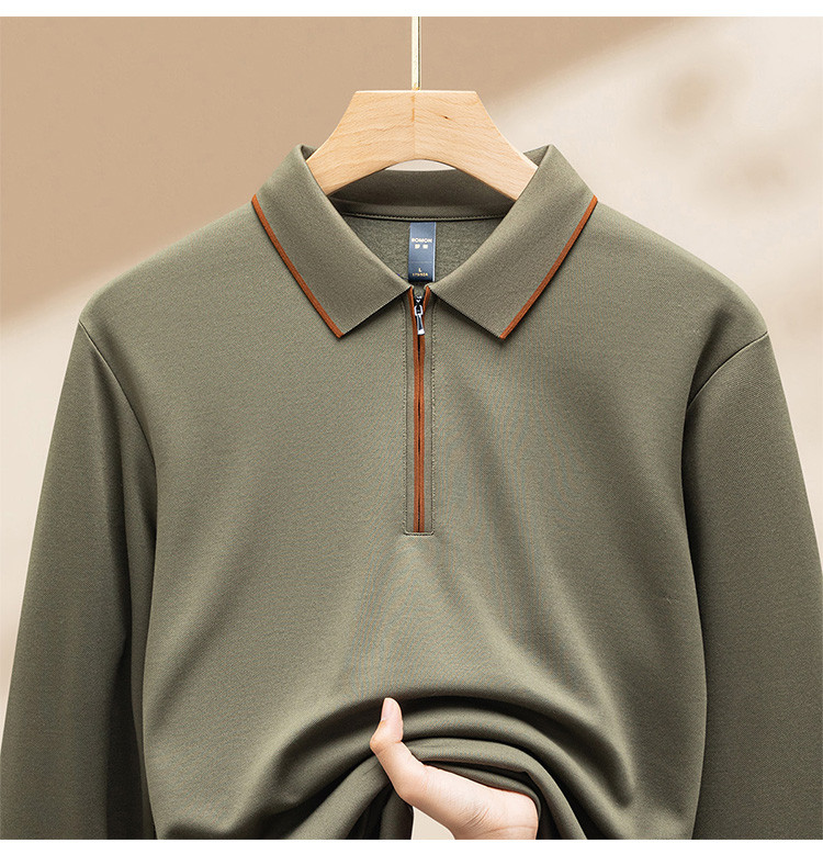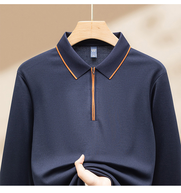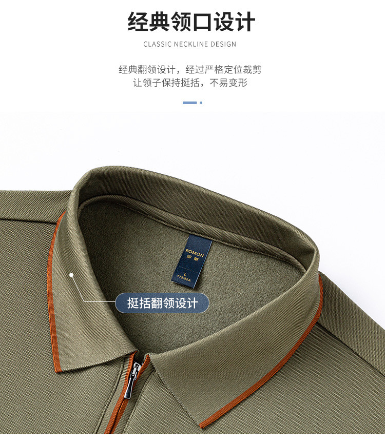 【羊毛蚕丝混纺 磨毛保暖】罗蒙秋冬长袖POLO衫男士磨毛半拉链保暖polo衫男长袖t恤