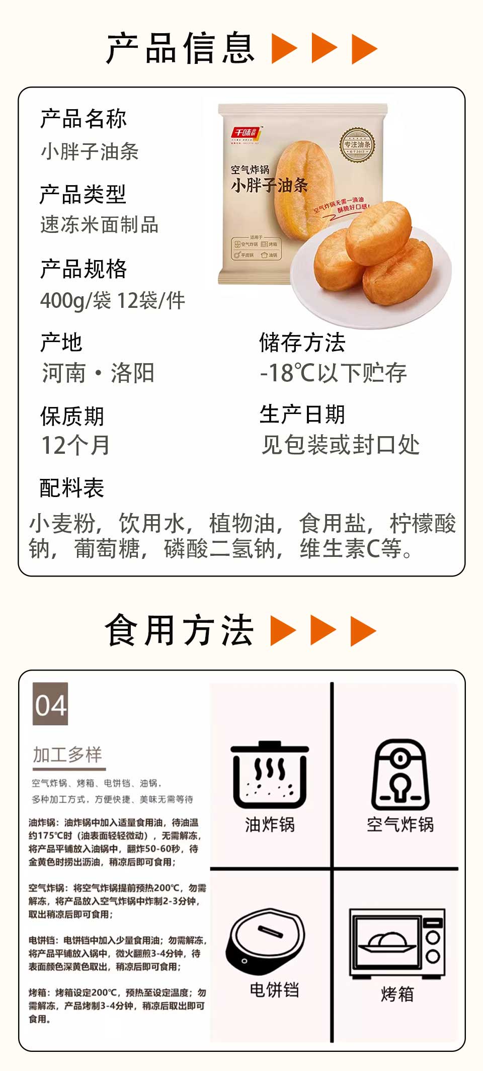 25G千味央厨空气炸锅小胖子油条 400g/袋(15g/个) 12袋/件