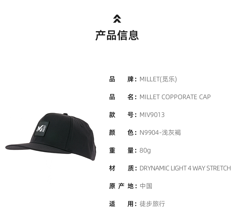 MILLET鸭舌帽速干帽 MIV9013 MILLET CORP CAP