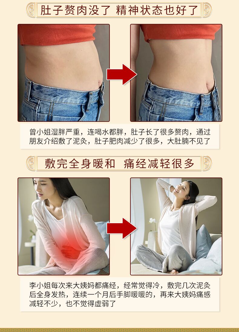 坚持敷灸可明显感觉气色更加红润,睡眠状况变好,并且可改善“湿胖”,消除肚子赘肉,活跃精神状态,缓解痛经、改善体寒