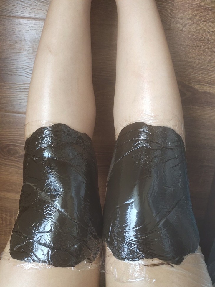 4 涂好后,用保鲜膜盖住(盖好保鲜膜后 可以找一条干净的毛巾盖住)。慢慢的你会感觉一股热气传到了整个身体,超级舒服放松!