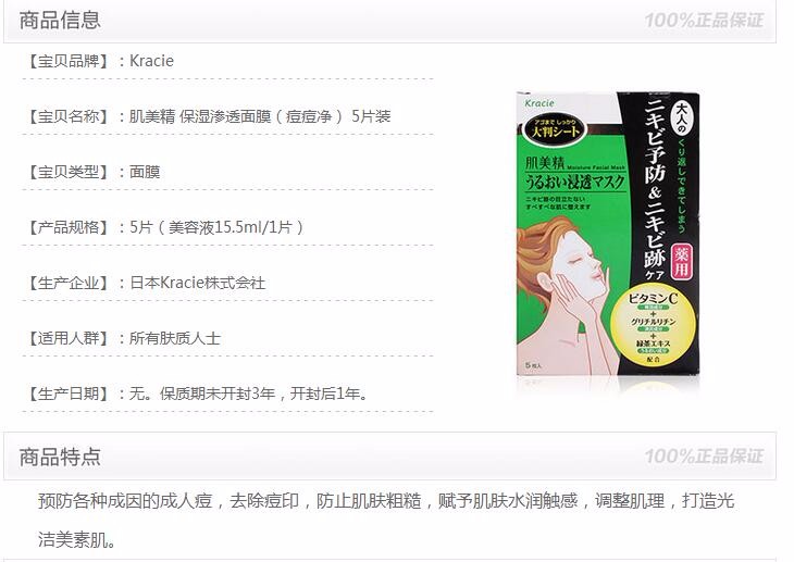 Kanebo嘉娜宝肌美精面膜 普绿 4片装 日本