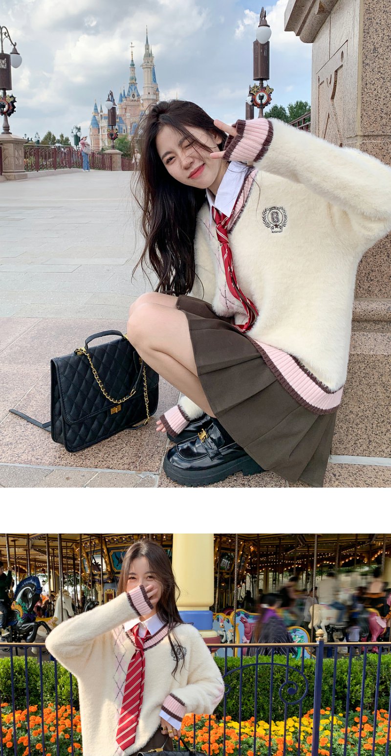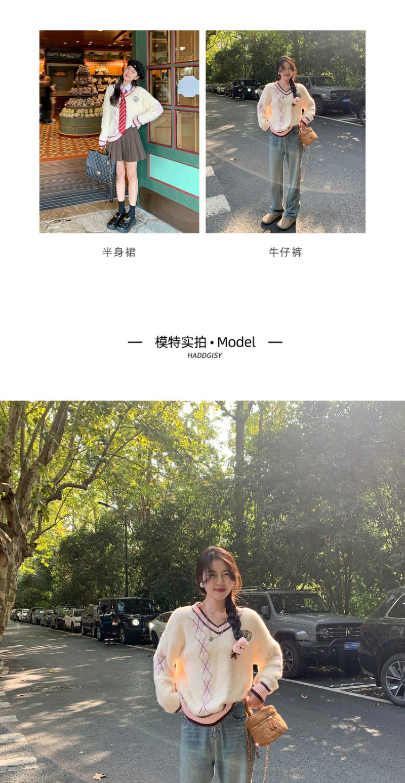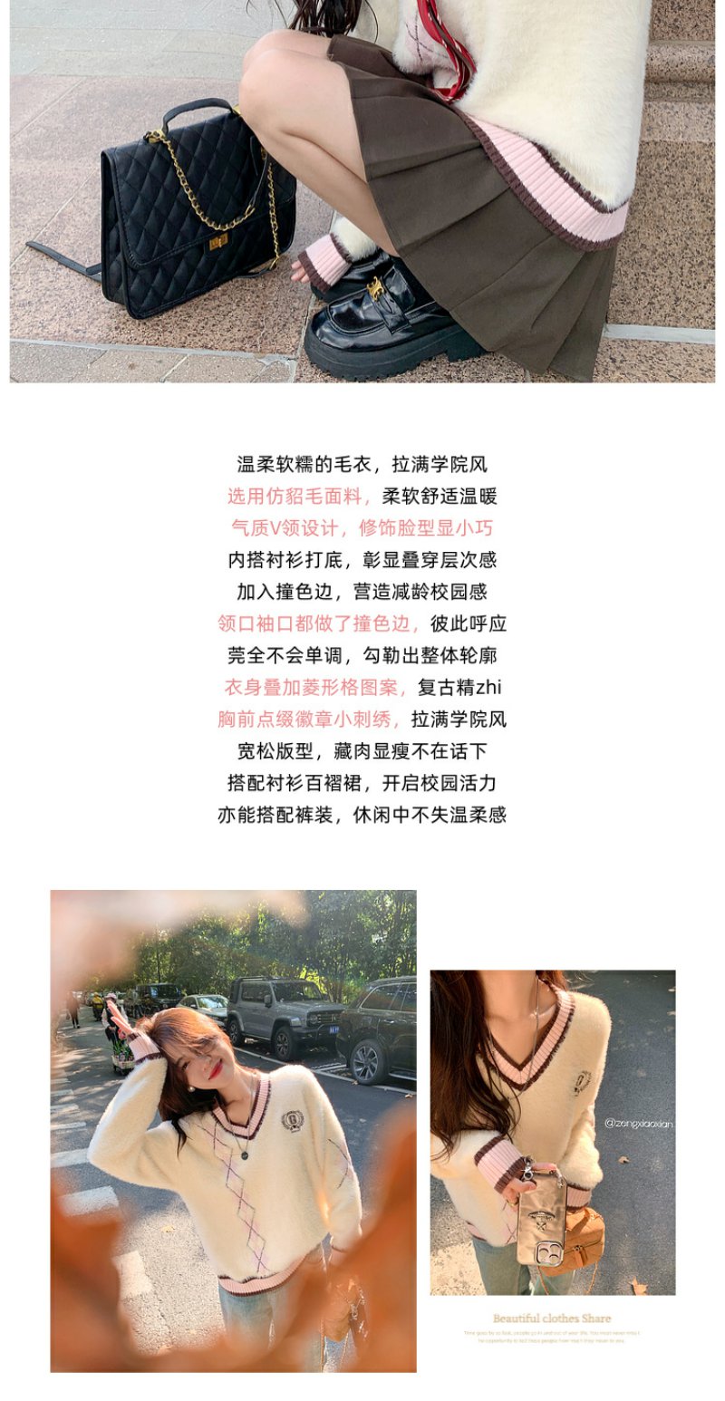 <曾小咸推荐>【少女收割机】V领学院风毛衣