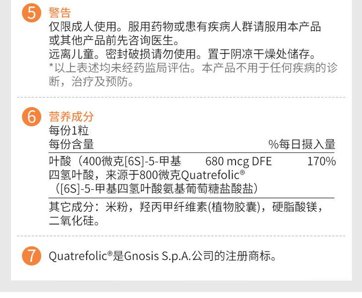 活性叶酸 400mcg(5-甲基四氢叶酸30粒